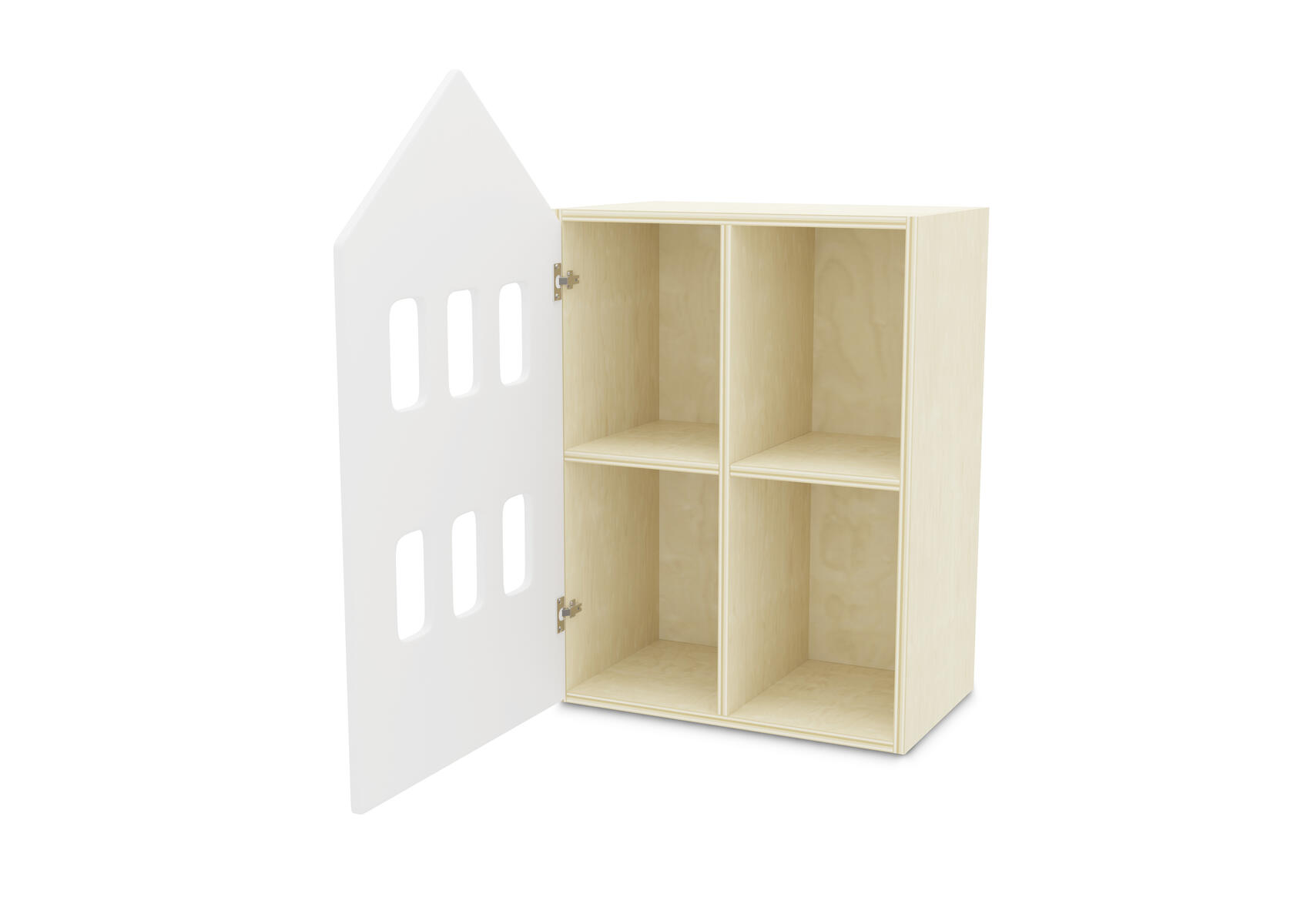 Lekfull färdigkombination med luckor. Stomme tillverkad i björkplywood med lucka av målad 15 mm MDF. För att undvika tipprisk ska fristående moduler ha stödben med 2 låsbara hjul. Moduler med ben eller sockel ska fästas mot vägg, gäller moduler högre än 80 cm. Klarar kraven för giftfri förskola och är dessutom FSC-märkt. I satsen ingår bas 38404-609, 2 hyllor 38241-609, 4 dörrar 83372 och skiljevägg 80011. Svanenmärkt, licensnummer 5031 0099.