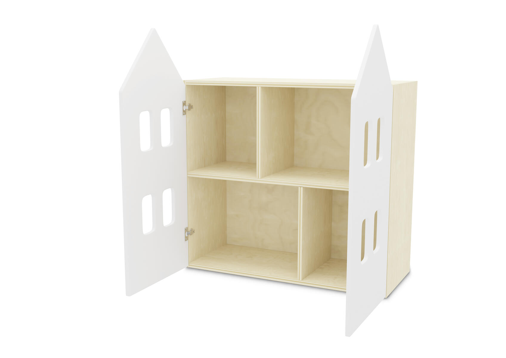 Det här stora dockhuset skapas med Fixa-skåp och dörrar i form av husfasader. Inred gärna med tapeter och tavlor, hyllplanen är flyttbara. Du kan också skapa ett hemligt tittskåp där barnen får kika in med ficklampa och lista ut vad som döljer sig därinne. Stomme tillverkad i björkplywood med front av målad 15 mm MDF. I satsen ingår bas 38497-609, hylla 36948-609, 2 skiljeväggar 80096-609 och dörrar 83377 och 83378. För att undvika tipprisk ska fristående moduler ha stödben med 2 låsbara hjul. Moduler utan eller med ben eller sockel ska fästas mot vägg, gäller moduler högre än 80 cm. Svanenmärkt, licensnummer 5031 0099.