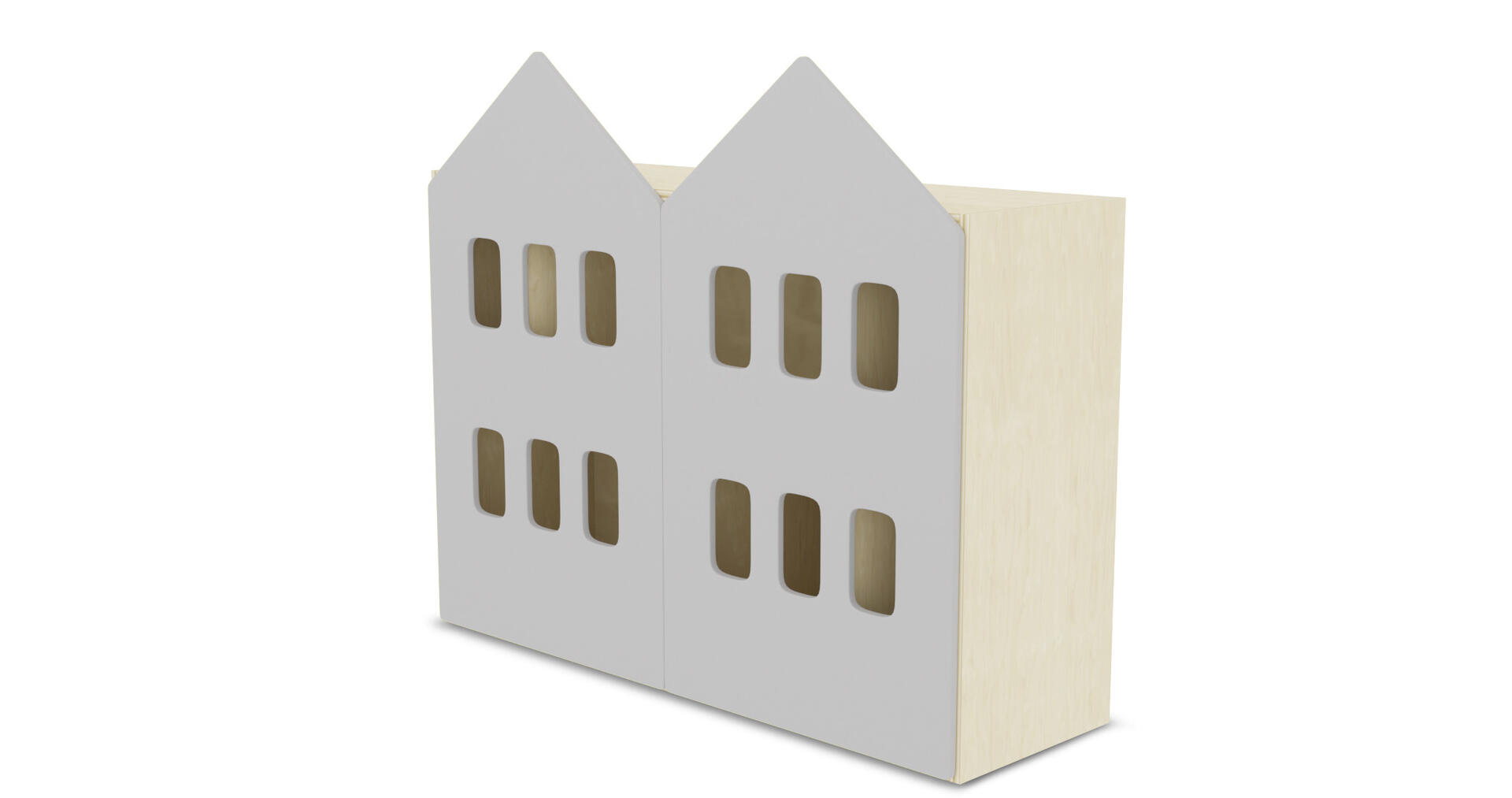Det här stora dockhuset skapas med Fixa-skåp och dörrar i form av husfasader. Inred gärna med tapeter och tavlor, hyllplanen är flyttbara. Du kan också skapa ett hemligt tittskåp där barnen får kika in med ficklampa och lista ut vad som döljer sig därinne. Stomme tillverkad i björkplywood med front av målad 15 mm MDF. I satsen ingår bas 38497-609, hylla 36948-609, 2 skiljeväggar 80096-609 och dörrar 83377 och 83378. För att undvika tipprisk ska fristående moduler ha stödben med 2 låsbara hjul. Moduler utan eller med ben eller sockel ska fästas mot vägg, gäller moduler högre än 80 cm. Svanenmärkt, licensnummer 5031 0099.