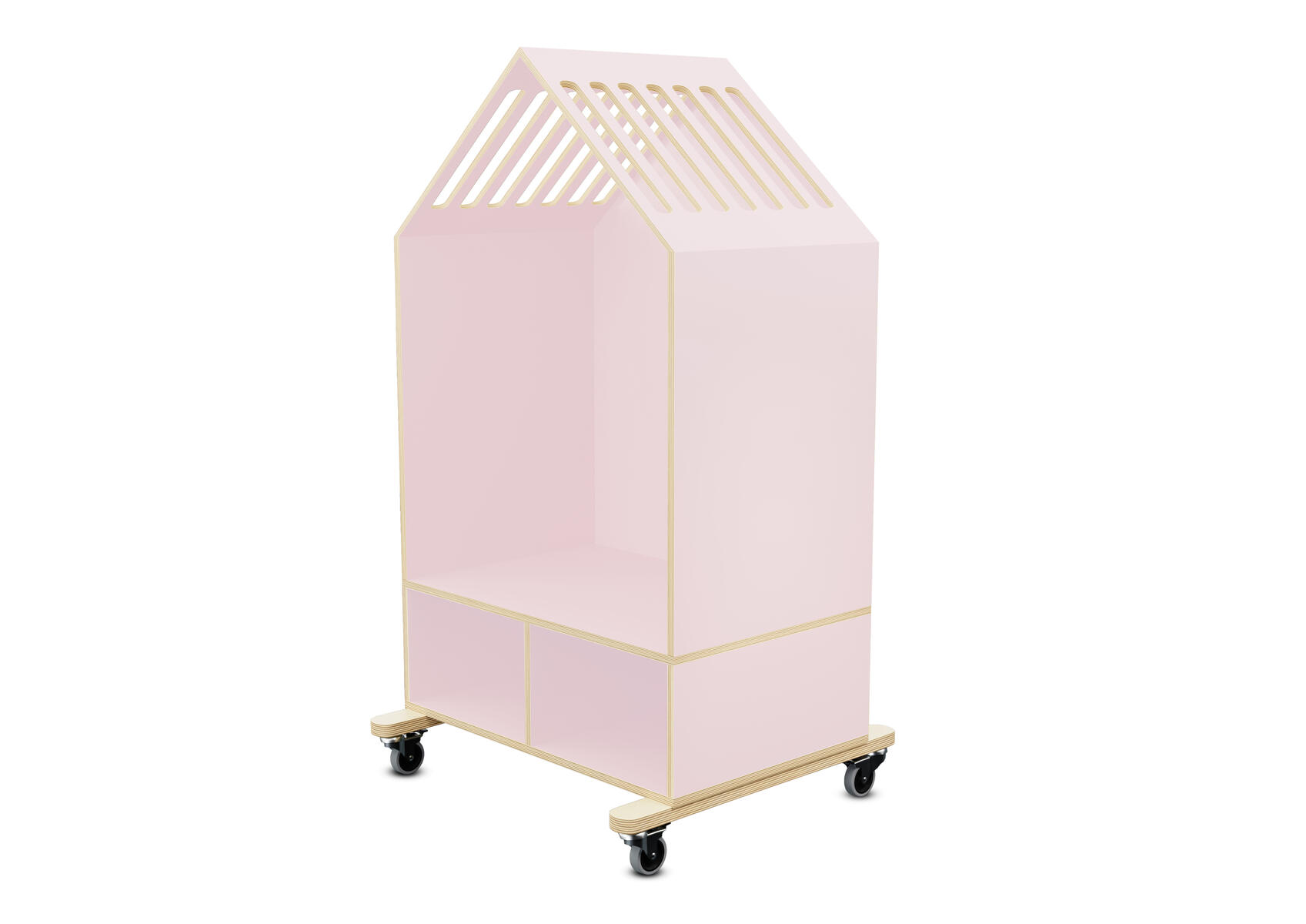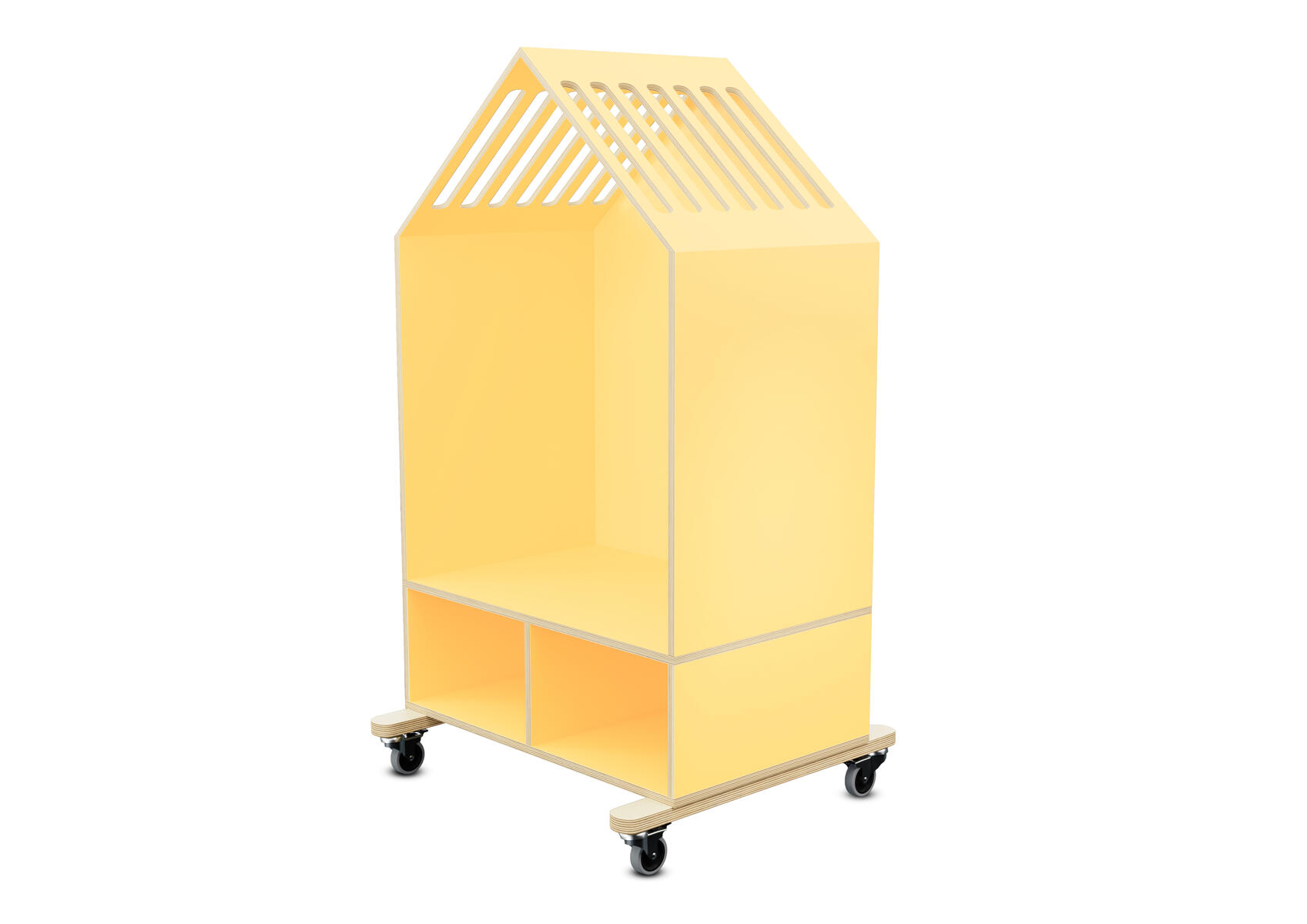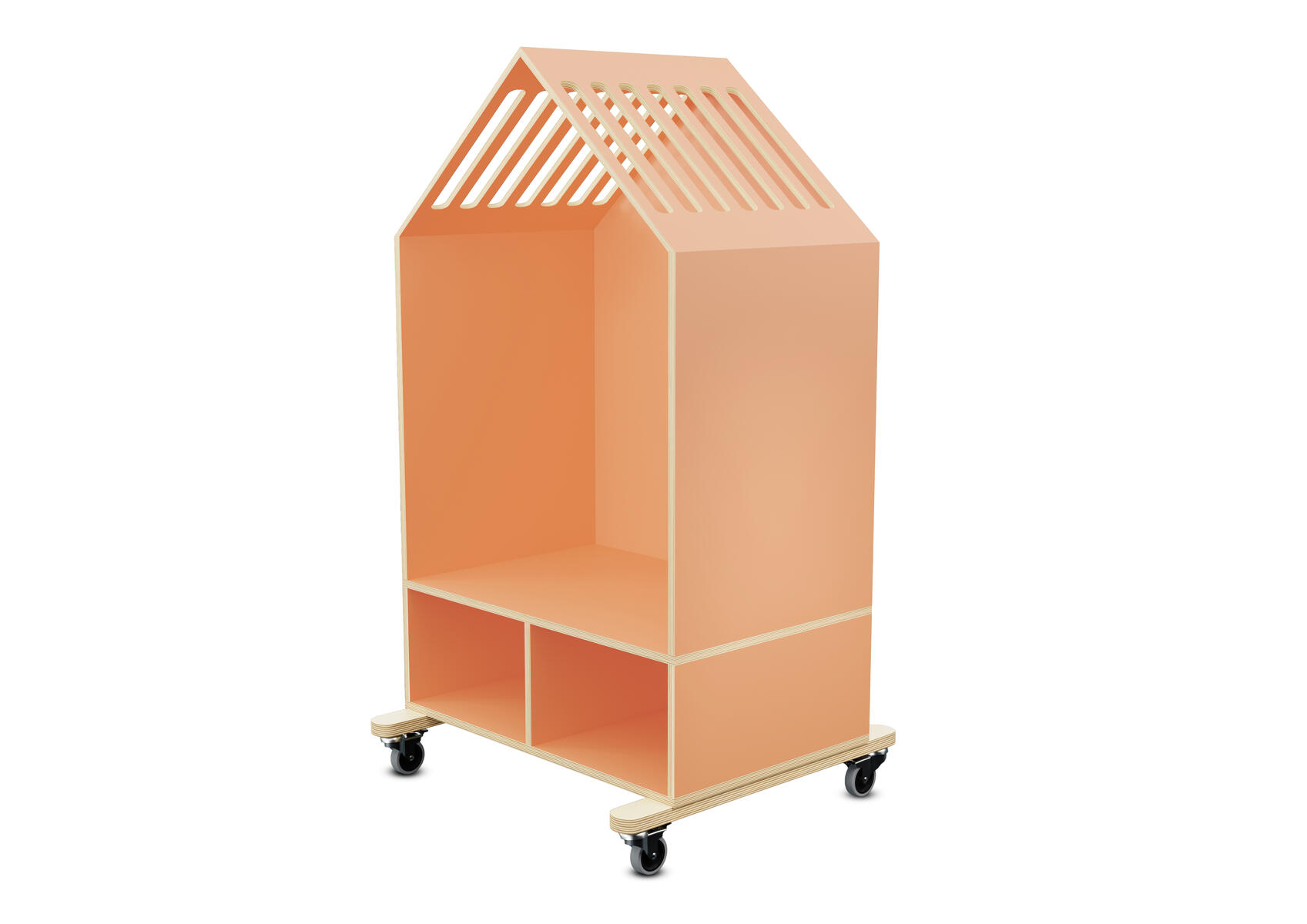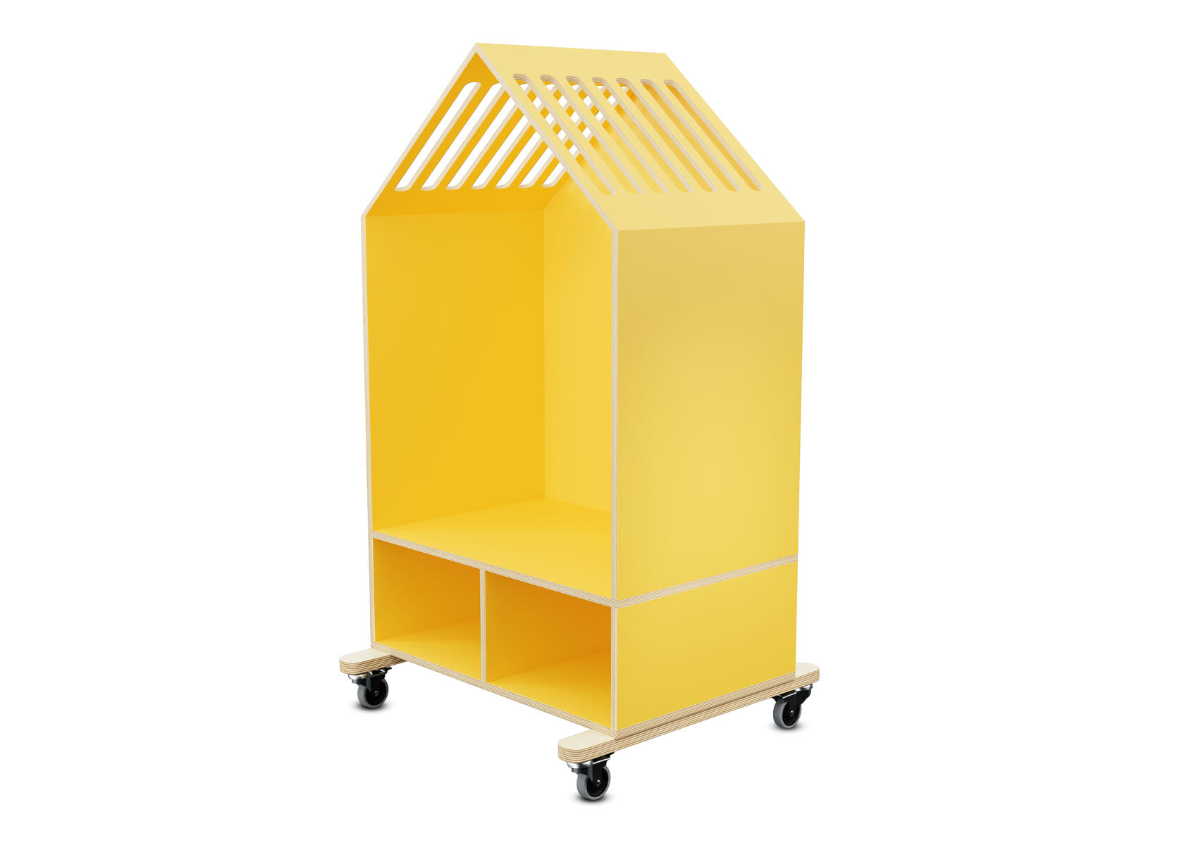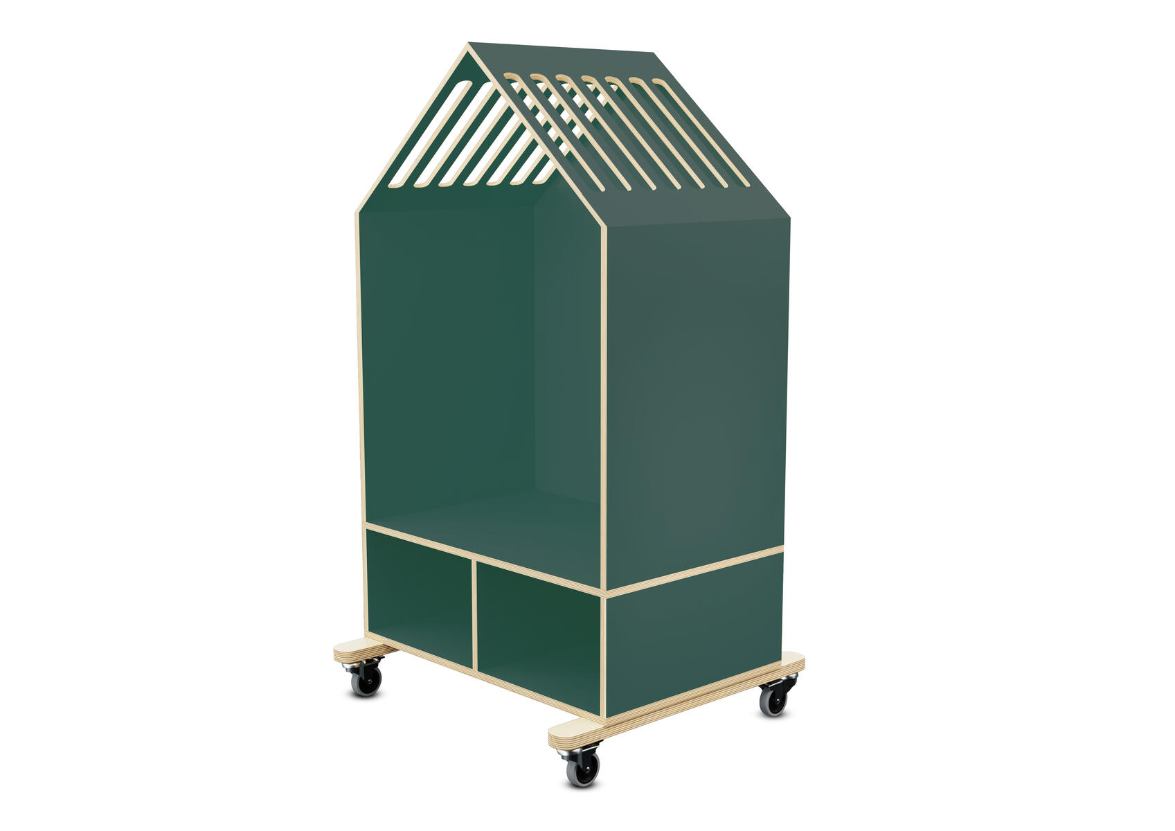 Färdigbyggt hus med smart förvaring och stödben. Hjul med broms. Plywood med högtryckslaminat. Björk och vitpigmenterad helt i plywood. Baksida med magnetisk whiteboard. Kombinera gärna med Fixamadrass 3 djup 58 cm.