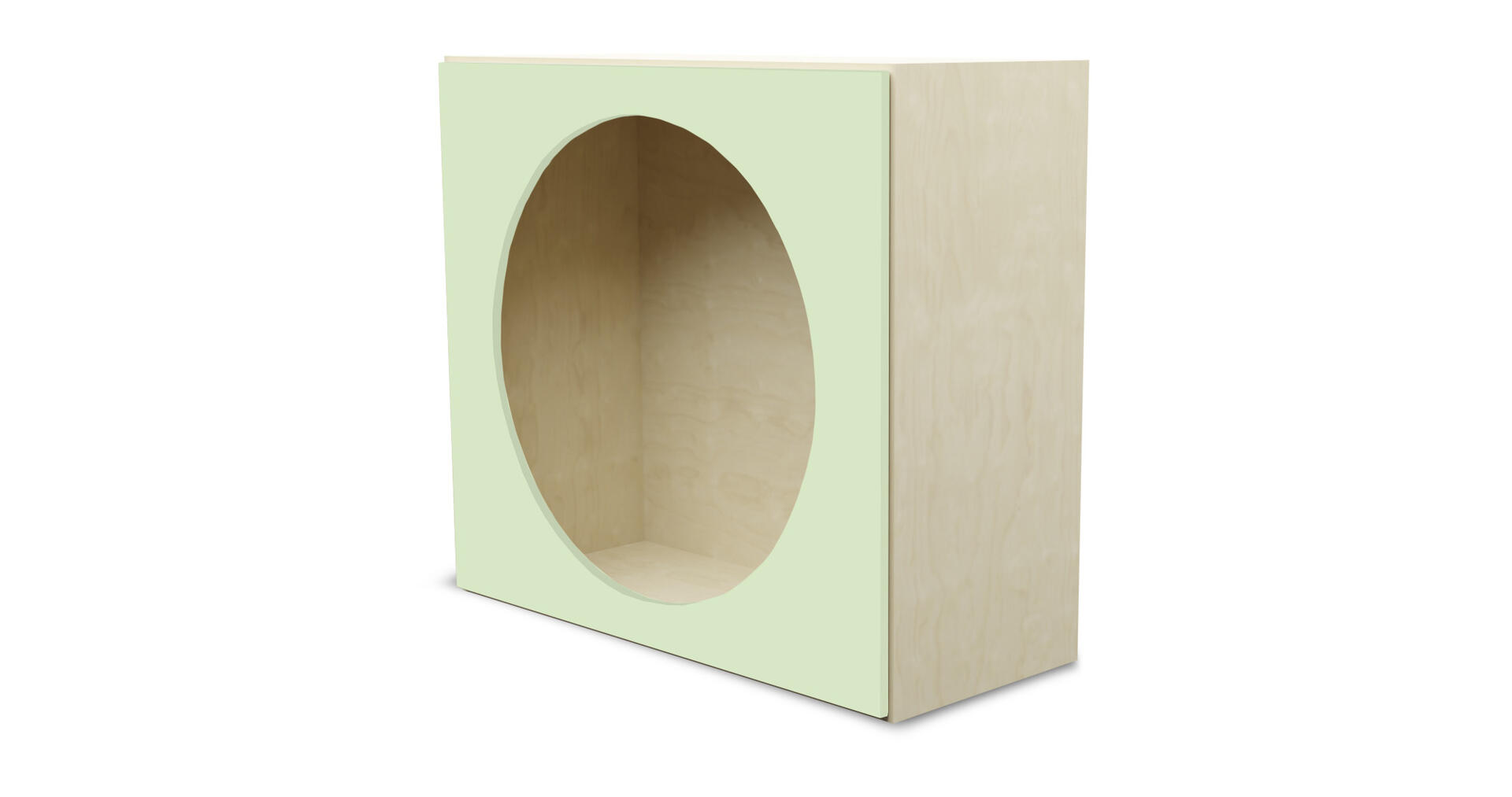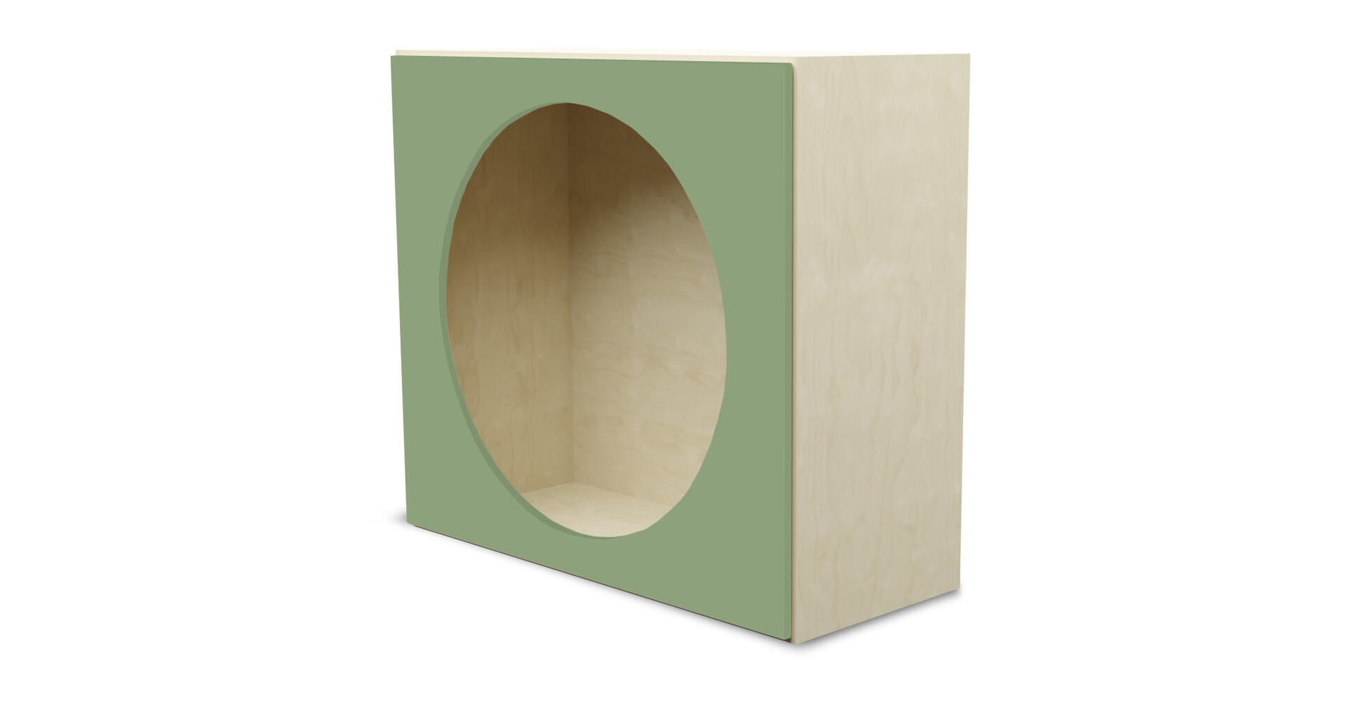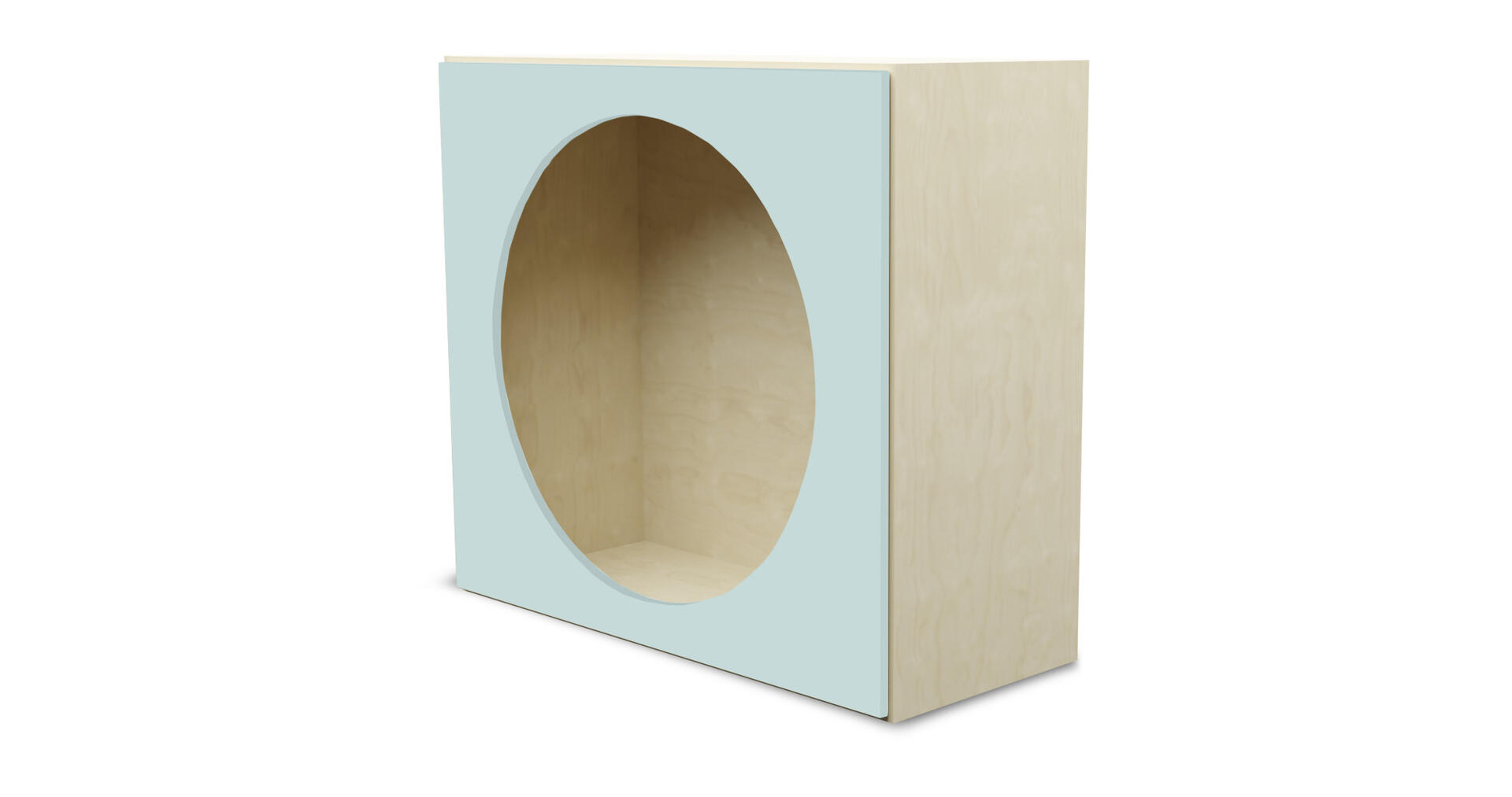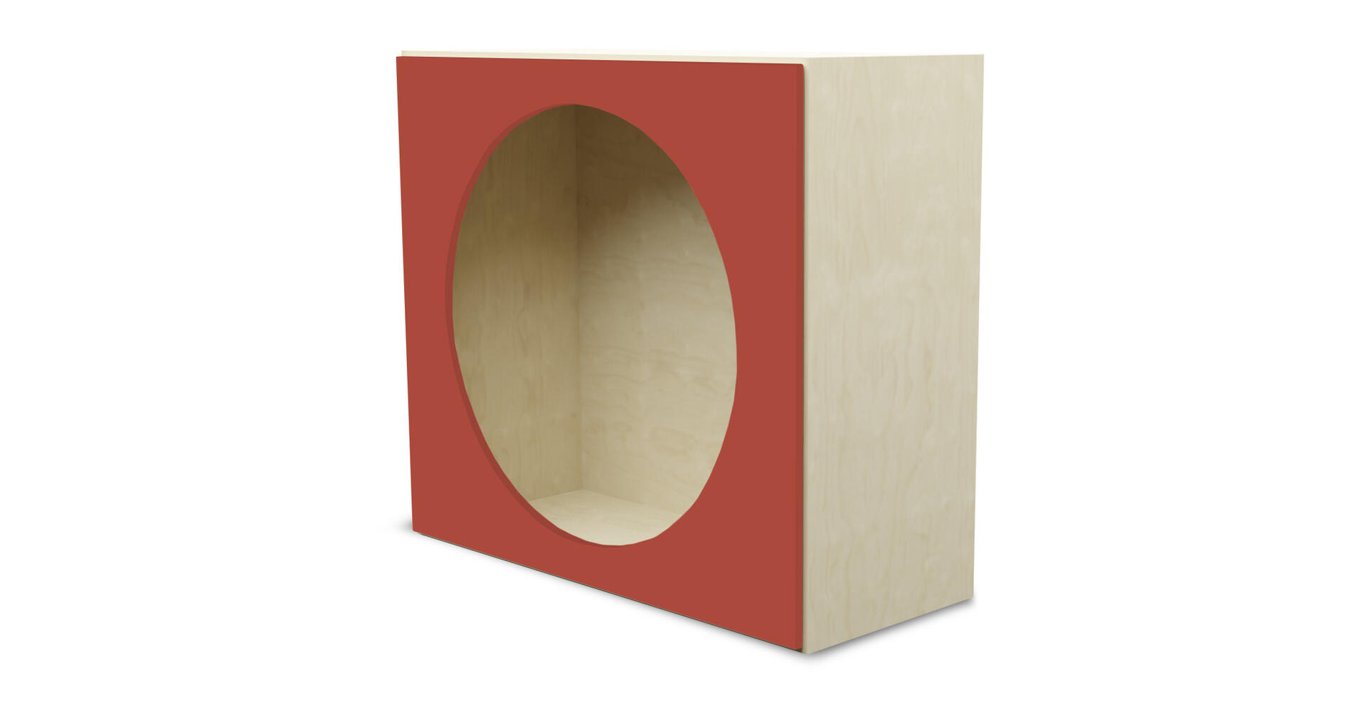 Färdig modul med hela insidan klädd i akrylspegel. Öppning utformad som en grotta. Gjord i 16 mm björkplywood. Färger med HT är med högtryckslaminat. Björk och vitpigmenterad är helt i 18 mm plywood. Mått: B88xH79xD88 cm.