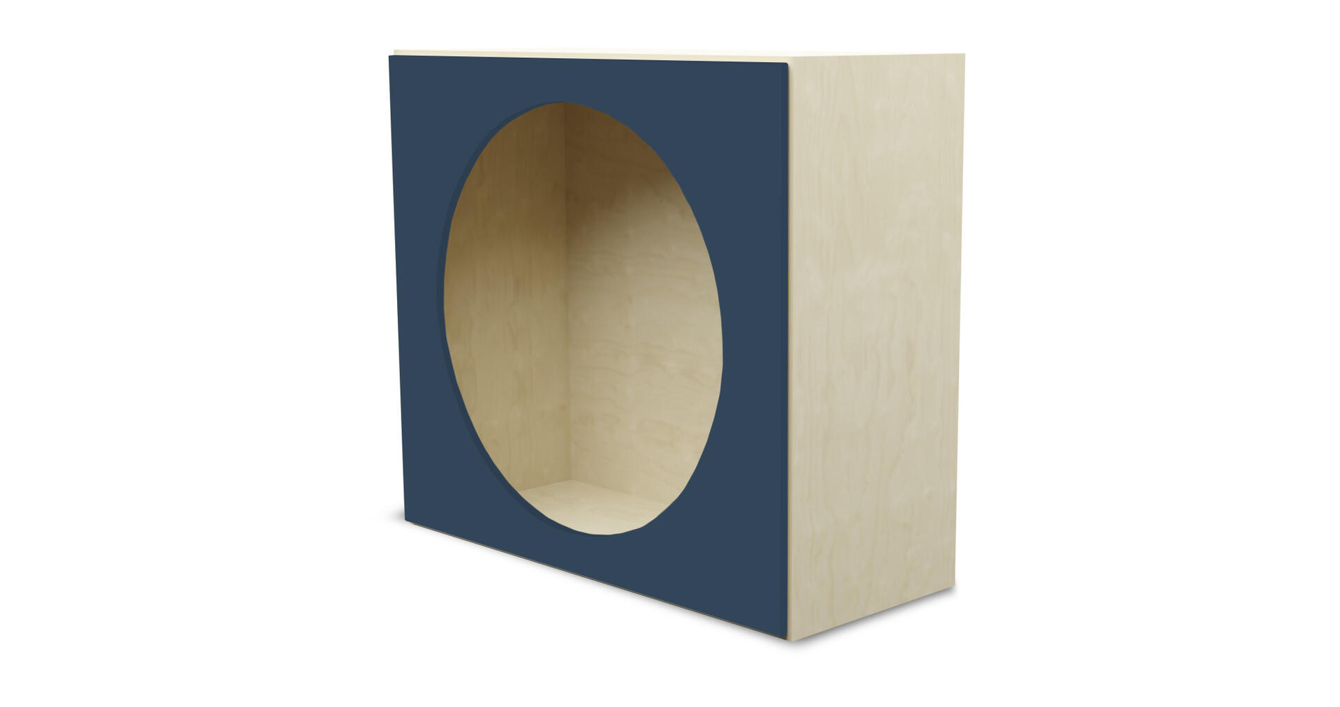 Färdig modul med hela insidan klädd i akrylspegel. Öppning utformad som en grotta. Gjord i 16 mm björkplywood. Färger med HT är med högtryckslaminat. Björk och vitpigmenterad är helt i 18 mm plywood. Mått: B117xH117xD117 cm.