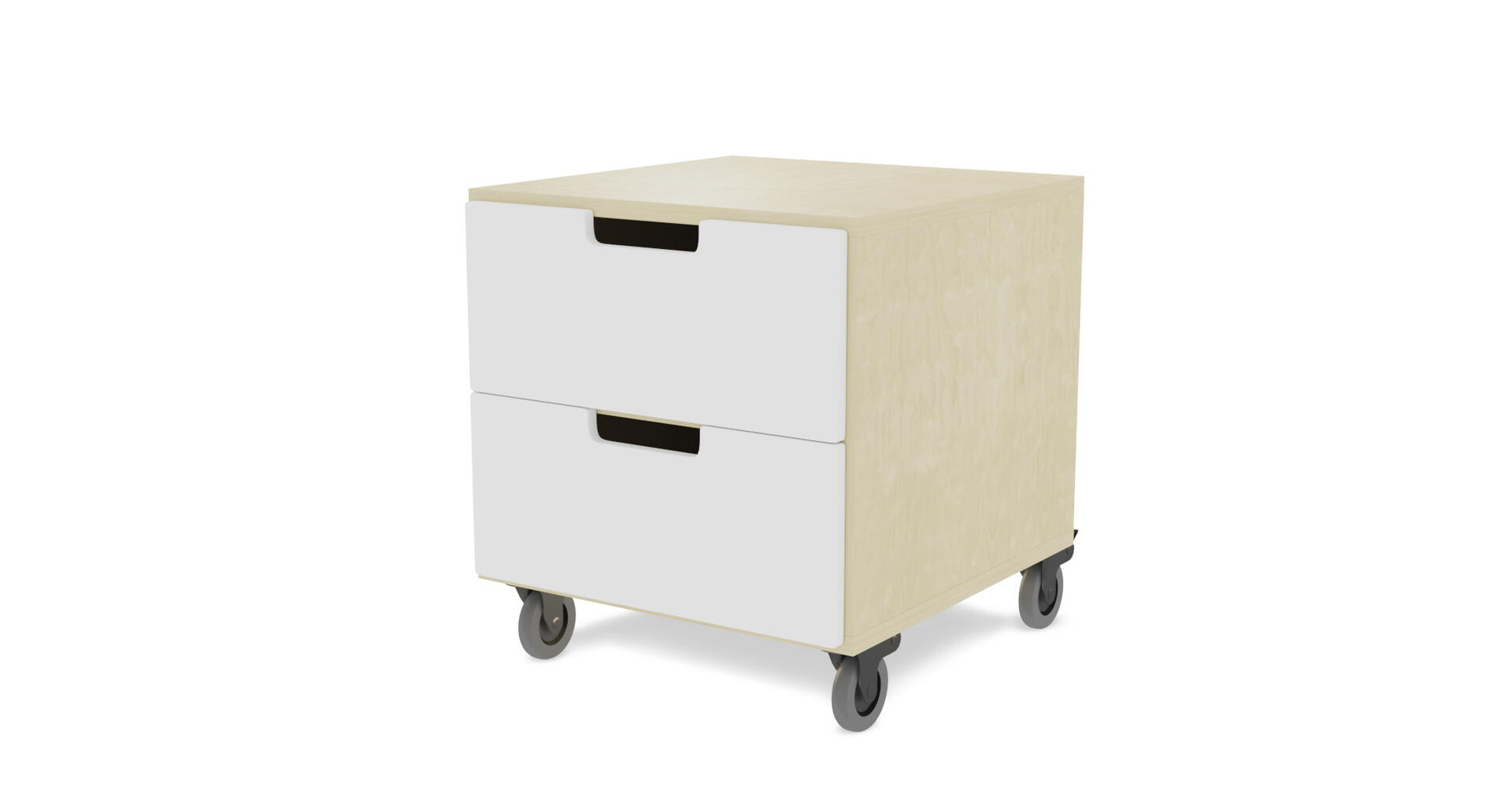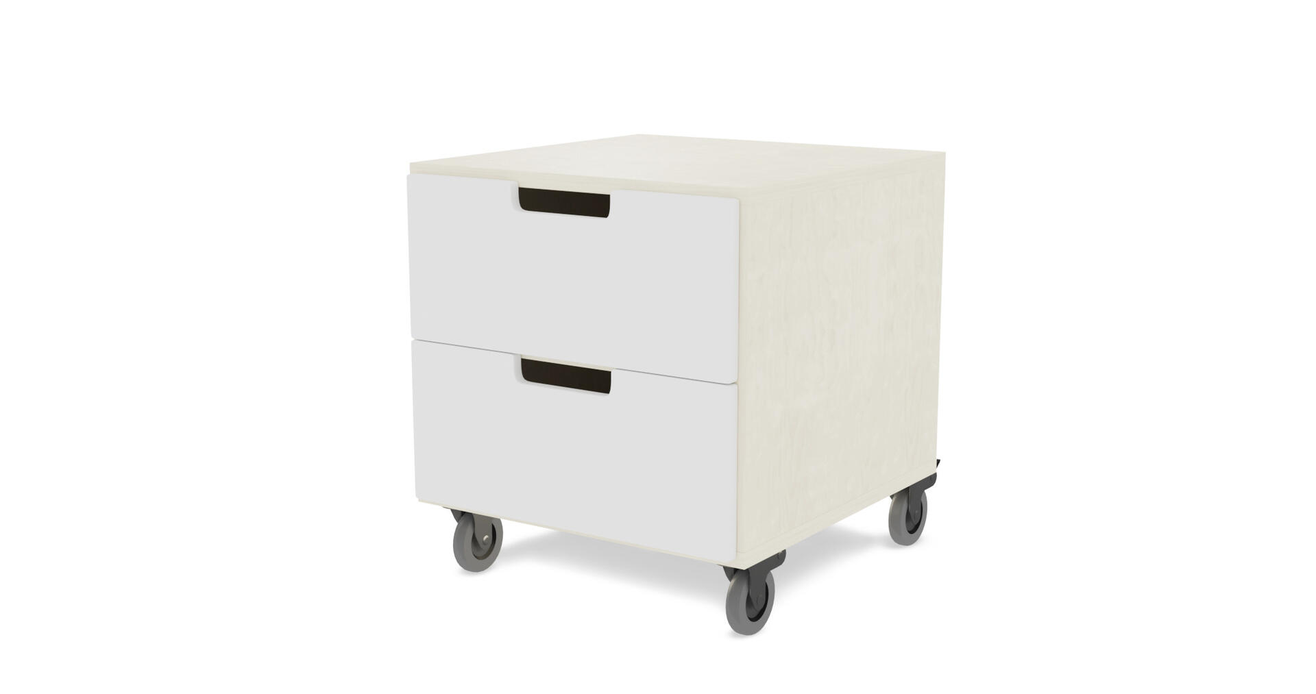 Låg färdigbyggd förvaring med tre breda fack. Mellanväggar är fasta. 4 hjul varav 2 roterbara med lås och 2 fasta. Enkel montering av hjul. Svanenmärkt, licensnummer 5031 0099.