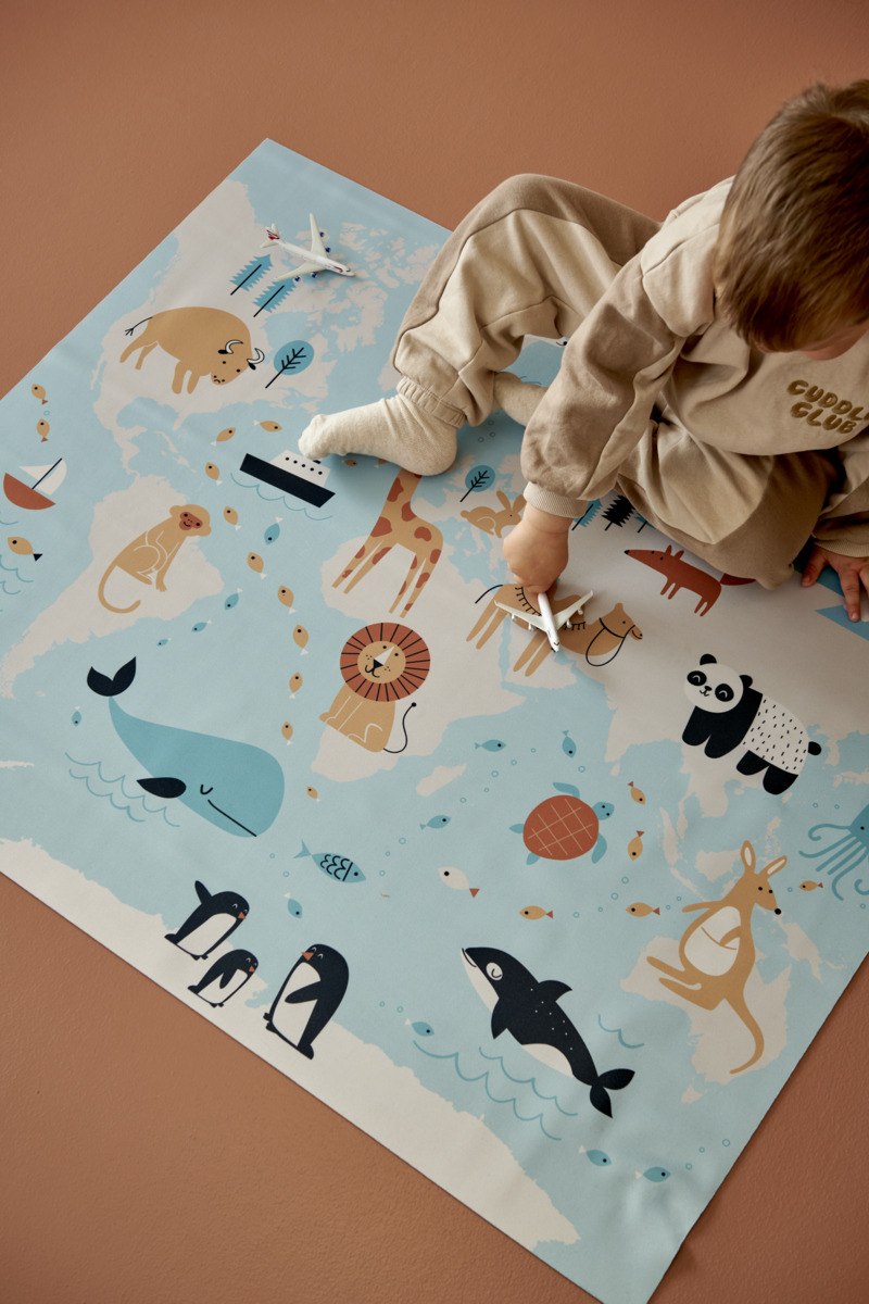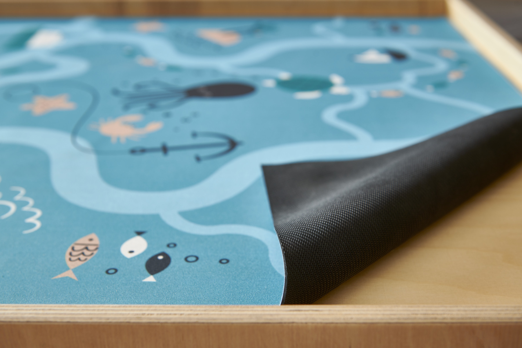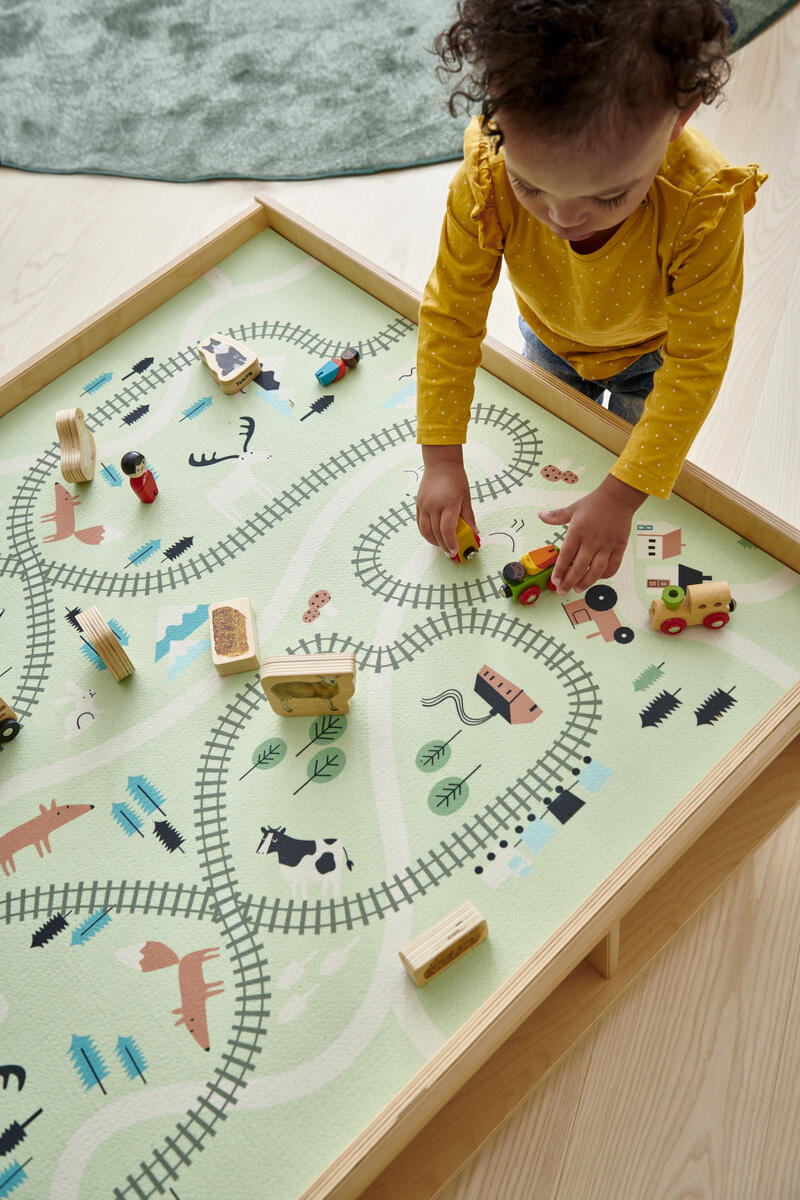 En lekmatta i stilren design med lekfullt motiv. Ingår i Fixa-play serien. Anpassad för att passa på lekborden 83410 och 83411, men fungerar också bra som lekmatta på golvet. Mattan skyddar lekytan och är ljuddämpande. Mått: 96,5x79,5 cm, 4 mm tjock. Av polyesterfilt. Gummerad undersida. PVC-fri.