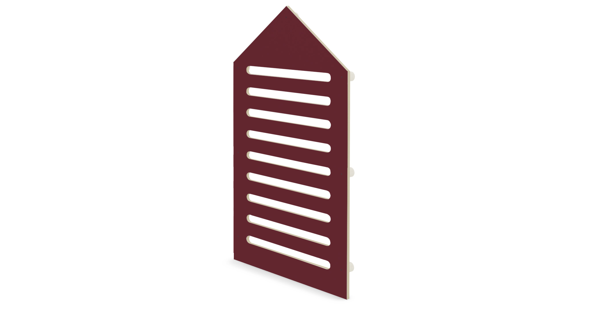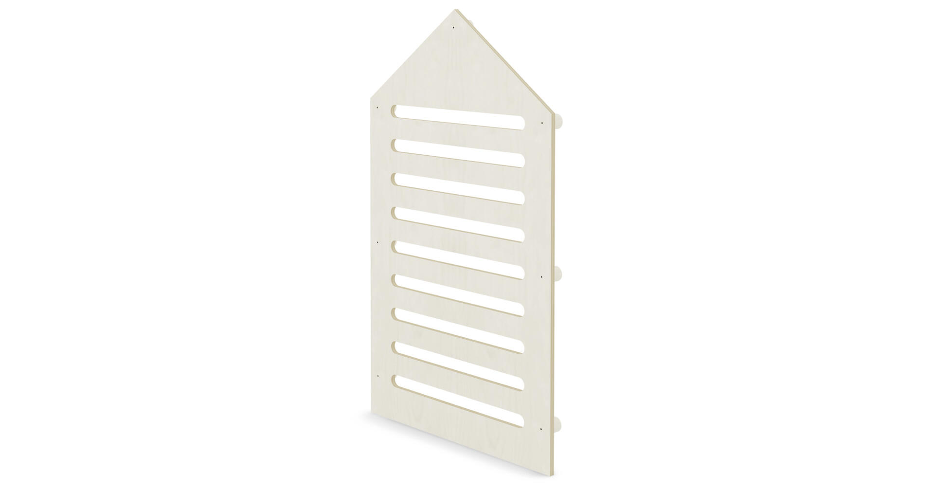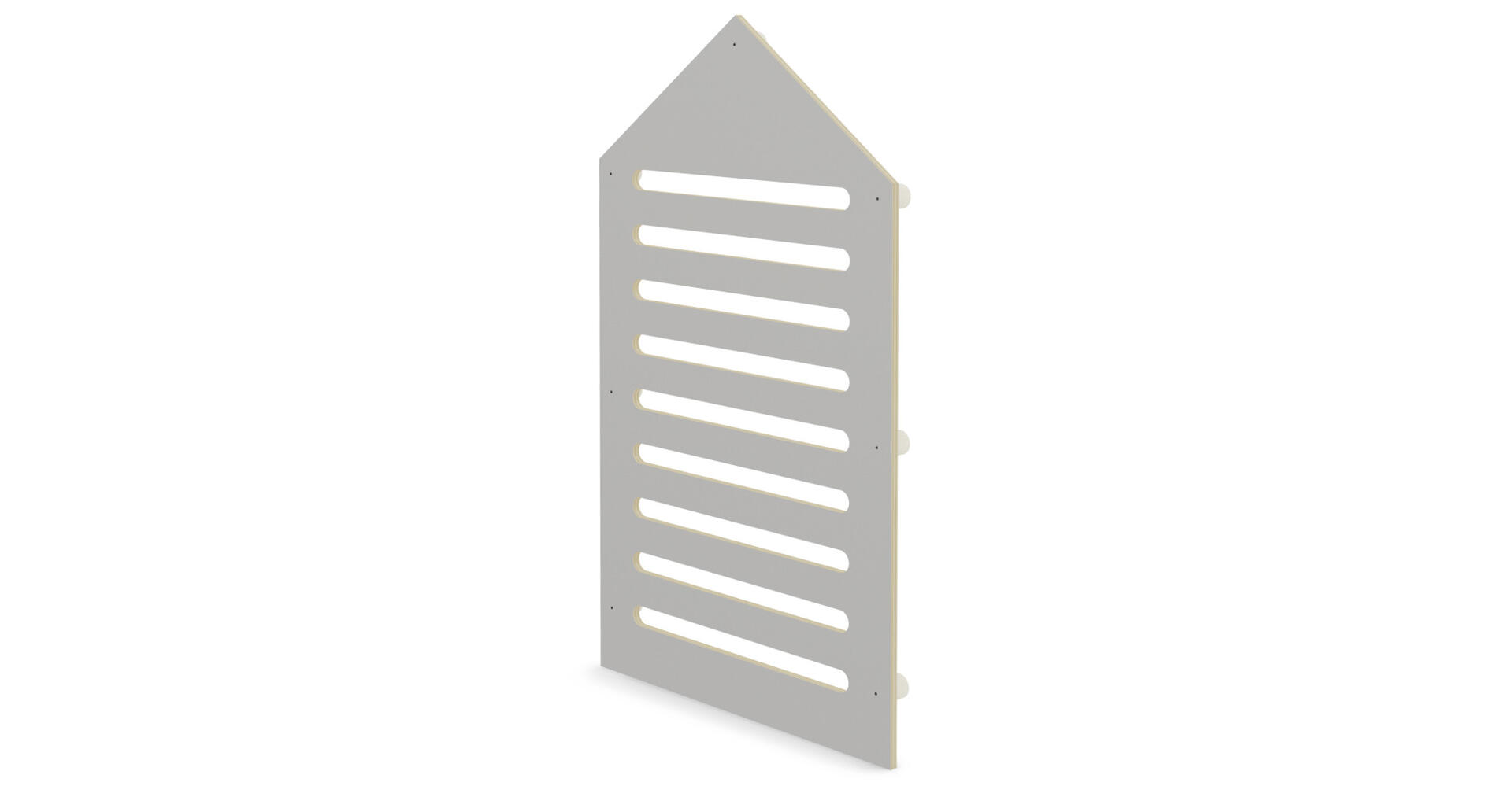 Motorikvägg i björkplywood utformad som en ribbstol. Förberedd med förborrade hål för säker och enkel montering. Monteras fler väggar bredvid varandra är det viktigt att de monteras ihop för att minimera klämrisken. Används alltid med godkänt fallunderlag enligt EN1177. Fallutrymme 1,5 m runtom. Förborrade distanser medföljer för att det ska bli rätt avstånd från väggen. Mellanrum ribba är 4,6 cm. Avstånden mellan ribborna är 7,7 cm. Björk och vitpigmenterad helt i plywood, övriga färger i laminat.