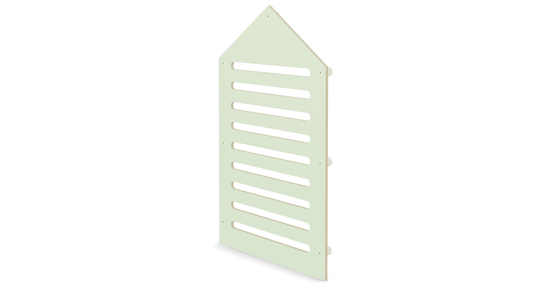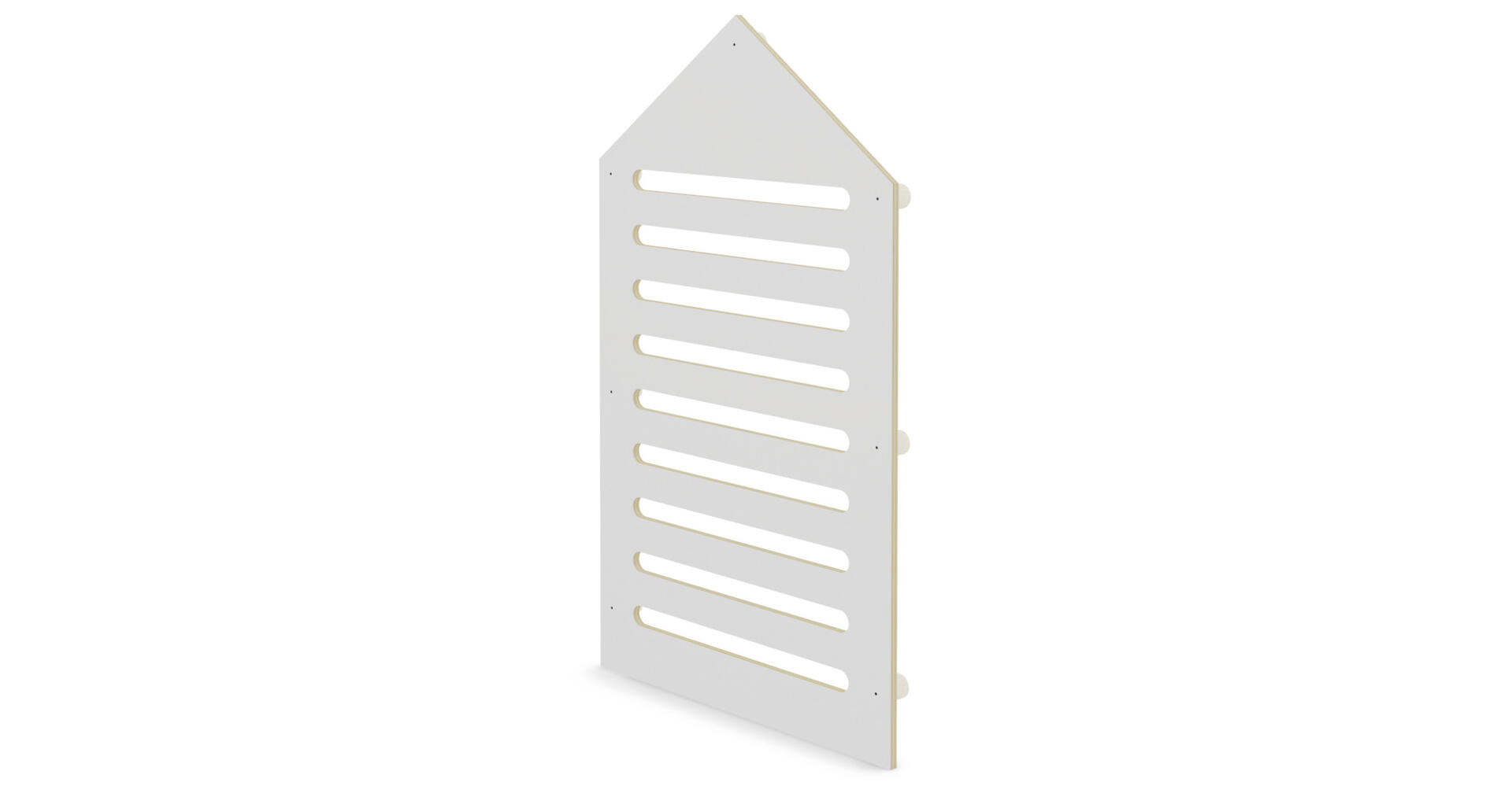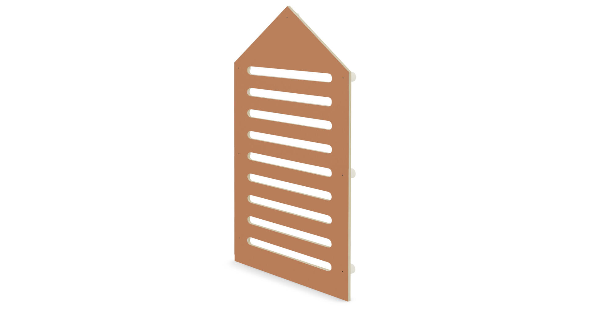 Motorikvägg i björkplywood utformad som en ribbstol. Förberedd med förborrade hål för säker och enkel montering. Monteras fler väggar bredvid varandra är det viktigt att de monteras ihop för att minimera klämrisken. Används alltid med godkänt fallunderlag enligt EN1177. Fallutrymme 1,5 m runtom. Förborrade distanser medföljer för att det ska bli rätt avstånd från väggen. Mellanrum ribba är 4,6 cm. Avstånden mellan ribborna är 7,7 cm. Björk och vitpigmenterad helt i plywood, övriga färger i laminat.