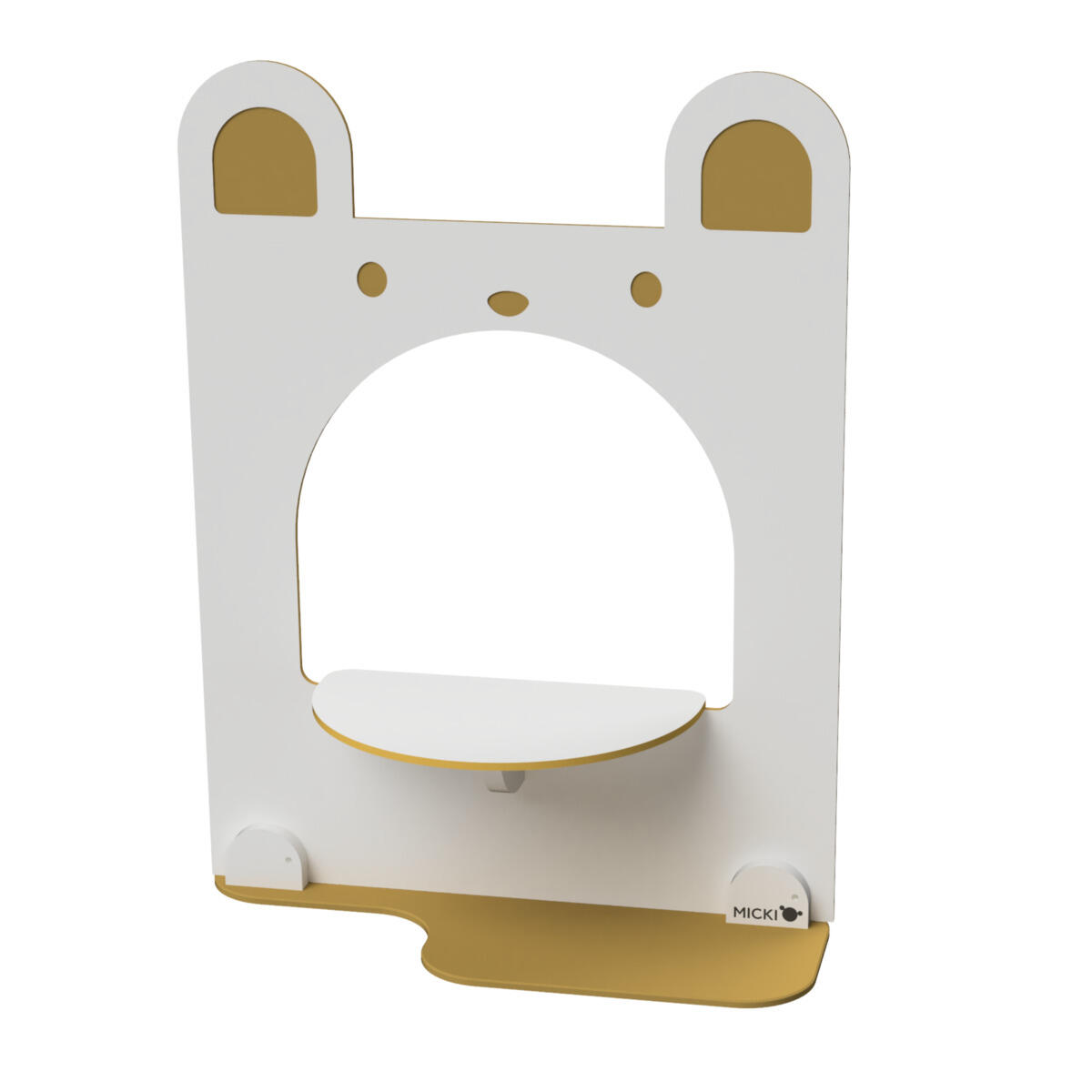 Lekskärm i MDF med ett fönster och ett litet bord där barnen kan leka butik. Platta fötter minskar snubbelrisken. Skärmarna kan kombineras på olika sätt för att skapa unika lekmiljöer.