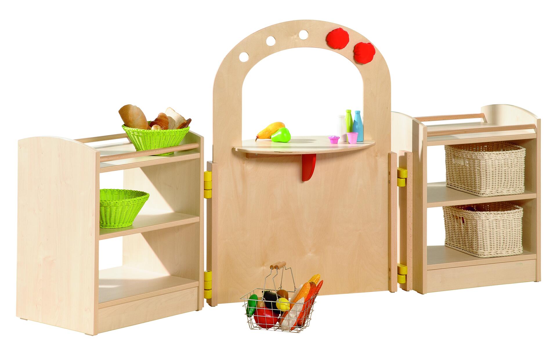 Tillhör Pamini-serien. Mixa och matcha efter eget önskemål och få ihop en kombination som passar för just er avdelning och era barn. I settet ingår två hyllor och en shop. Mått:185x40x101 cm.
