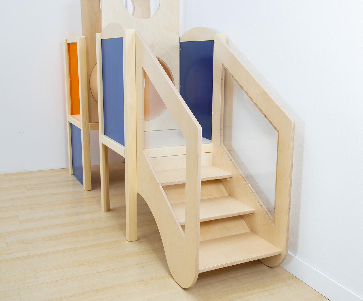 Med Tobiniserien kan du bygga ditt eget landskap efter plats och behov. Utgå från vilken bas som passar er verksamhet bäst och välj sedan tillval som stege, trappa eller rutschkana. Innehåller ett torn, hörna samt tunnel att krypa igenom med hål i tak för sensorisk upplevelse. Kan placeras centralt eller i rummets hörn. Med många olika materialval och taktila strukturer motiveras och uppmuntras barnens samspel mellan färger och former. Tillval går att beställa. Dekorationer och matta på bilden ingår ej. Tillbehören på bilden är: Tobini rutschkana 80448, Tobini vågtrappa 80454. I hörnmodulen finns det även en snurrande blomma samt spegel. 252x126x130 cm. Höjd på plattform: 60 cm. För barn 1–5 år.