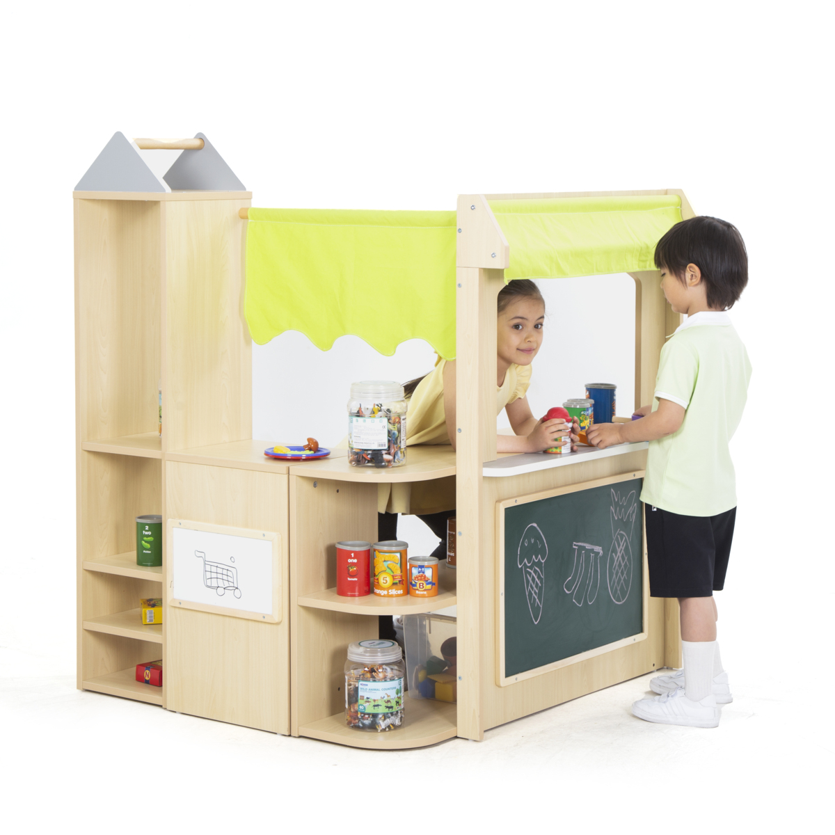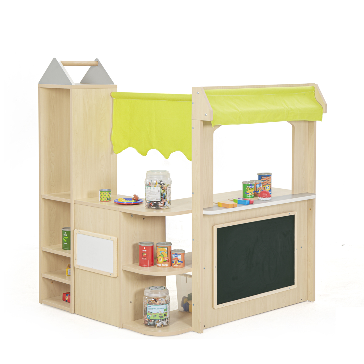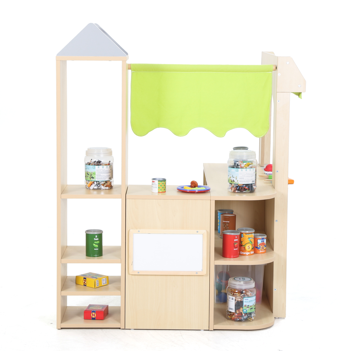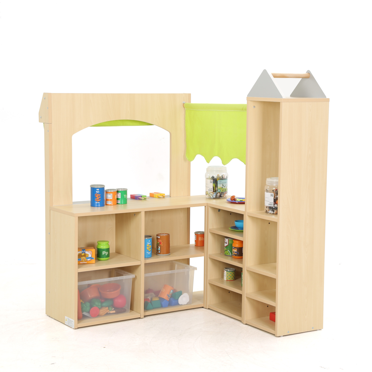 Lekstuga, rumsavdelare och förvaringssystem i ett. Tygtak och tio förvaringsfack för spel, böcker eller tillbehör till butiken. Neutral design med utrymme för egen kreativitet. Tygtak 18 % linne, 46 % bomull och 36 % ramie.