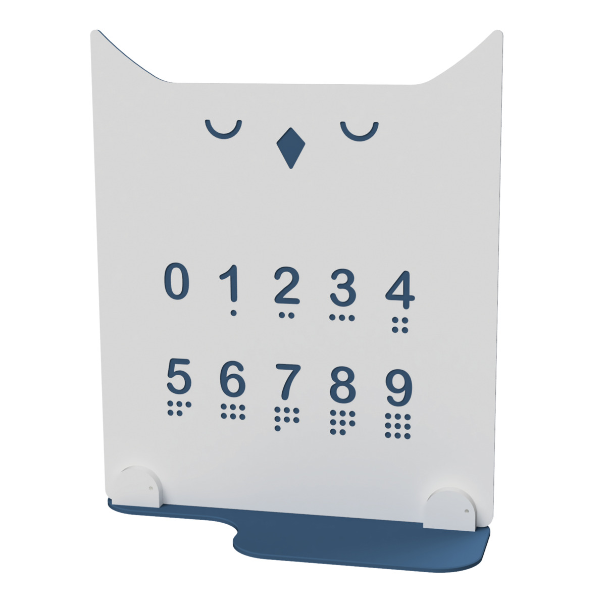 Lekskärm i MDF med graverade bokstäver på ena sidan och siffror på andra som barnen kan känna på och följa med fingrarna. Platta fötter minskar snubbelrisken. Skärmarna kan kombineras på olika sätt för att skapa unika lekmiljöer.