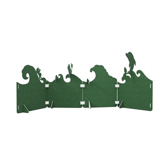 Lekskärmar i ljuddämpande filt. Används till scenografi, som rumsavdelare, krypin eller som förstärkande element i leken. Alla delar i Saga-serien kan användas tillsammans. En kombination av skog med 4 skärmar, 4 fötter och 6 gångjärn. Här ingår också en fågel och en ekorre, som kan monteras på lekskärmarna. Skärmarna är tvåfärgade, ena sidan är alltid ljusgrå. Fötter följer samma färgkombination som val av färg. Gångjärn är ljusgrå. Mått på skärmar: B58xH70 cm. Minst 50 % återvunnet material. 100 % återvinningsbar.