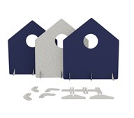 Lekskärmar i ljuddämpande filt. Används till scenografi, som rumsavdelare, krypin eller som förstärkande element i leken. Alla delar i Saga-serien kan användas tillsammans. En kombination av stad/hus med 4 skärmar, 4 fötter och 6 gångjärn. Skärmarna är tvåfärgade, ena sidan är alltid ljusgrå. Fötter följer samma färgkombination som val av färg. Gångjärn är ljusgrå. Mått på skärmar: B58xH70 cm. Minst 50 % återvunnet material. 100 % återvinningsbar.