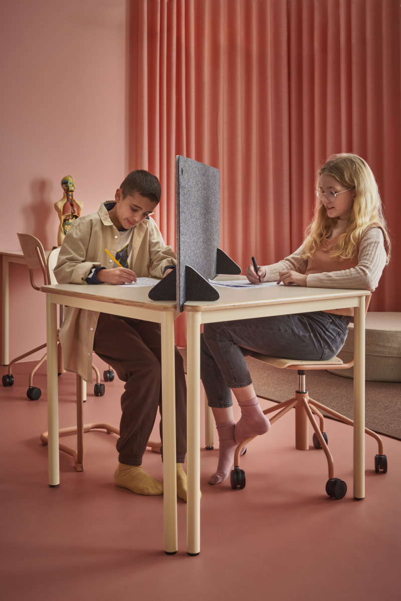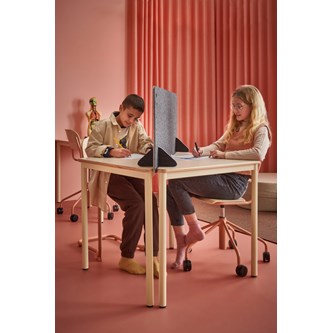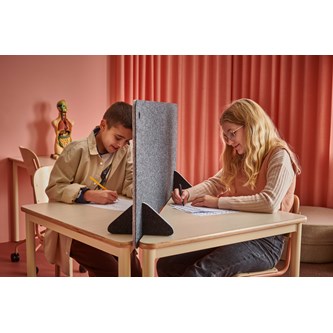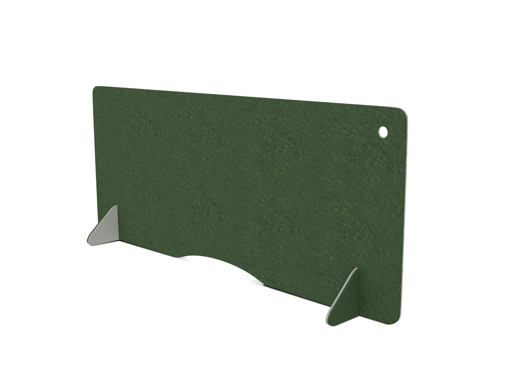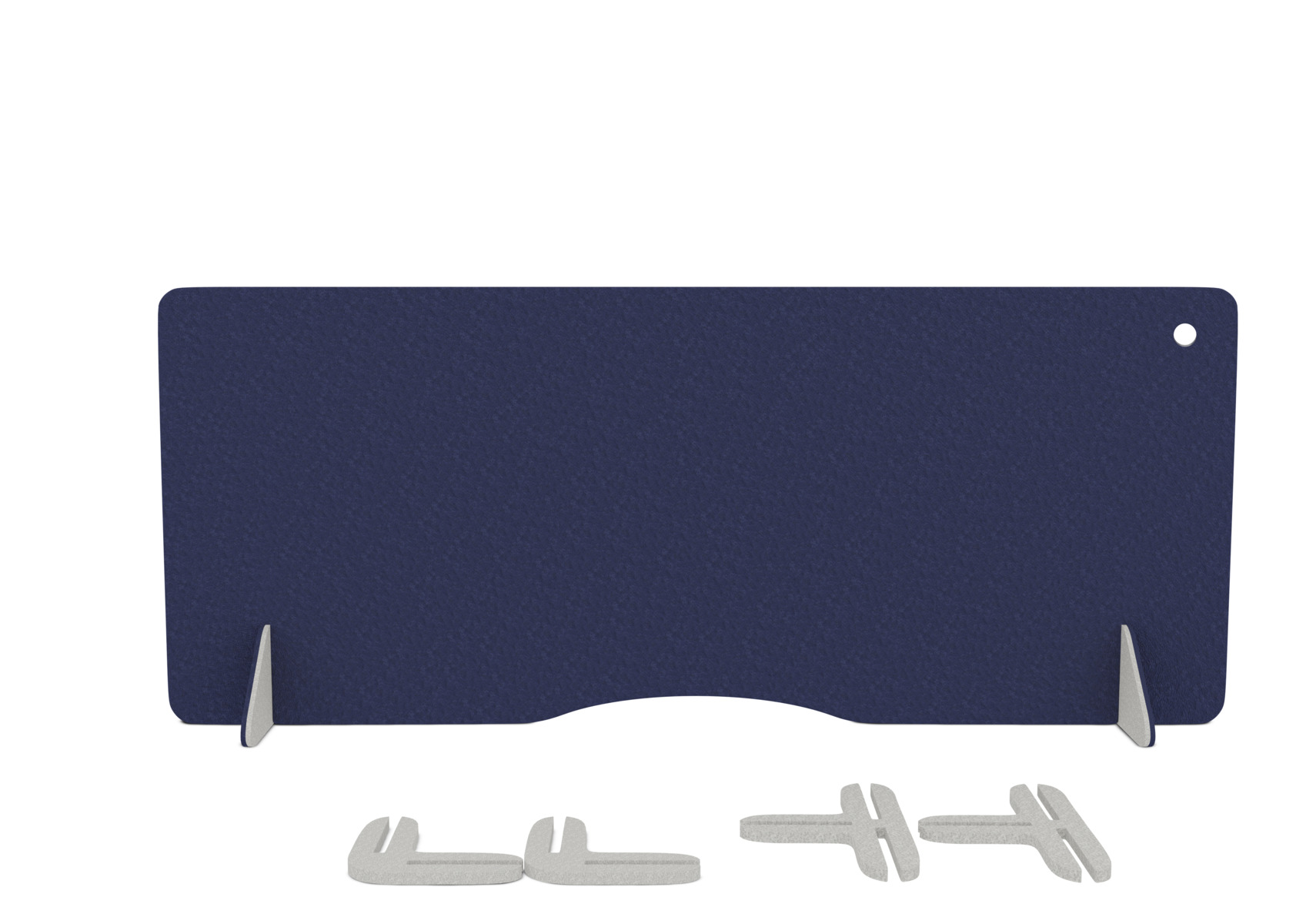 Ljuddämpande bordsskärm för att avskärma vi enskilt arbete. 1 skärm med 2 fötter och 2 fästen. Skärmarna är tvåfärgade, ena sidan är alltid ljusgrå. Fötter och fästen följer samma färgkombination som val av färg. Fästena är till för att stabilisera skärmen. Hål i skärm för upphängning på krok. Djupare skåra vid fot för att t.ex. fästa mellan två bord. Ursparning för sladdgenomföring i nederkant. Mått på skärmar: B112xH46 cm. Minst 50 % återvunnet material. 100 % återvinningsbar.