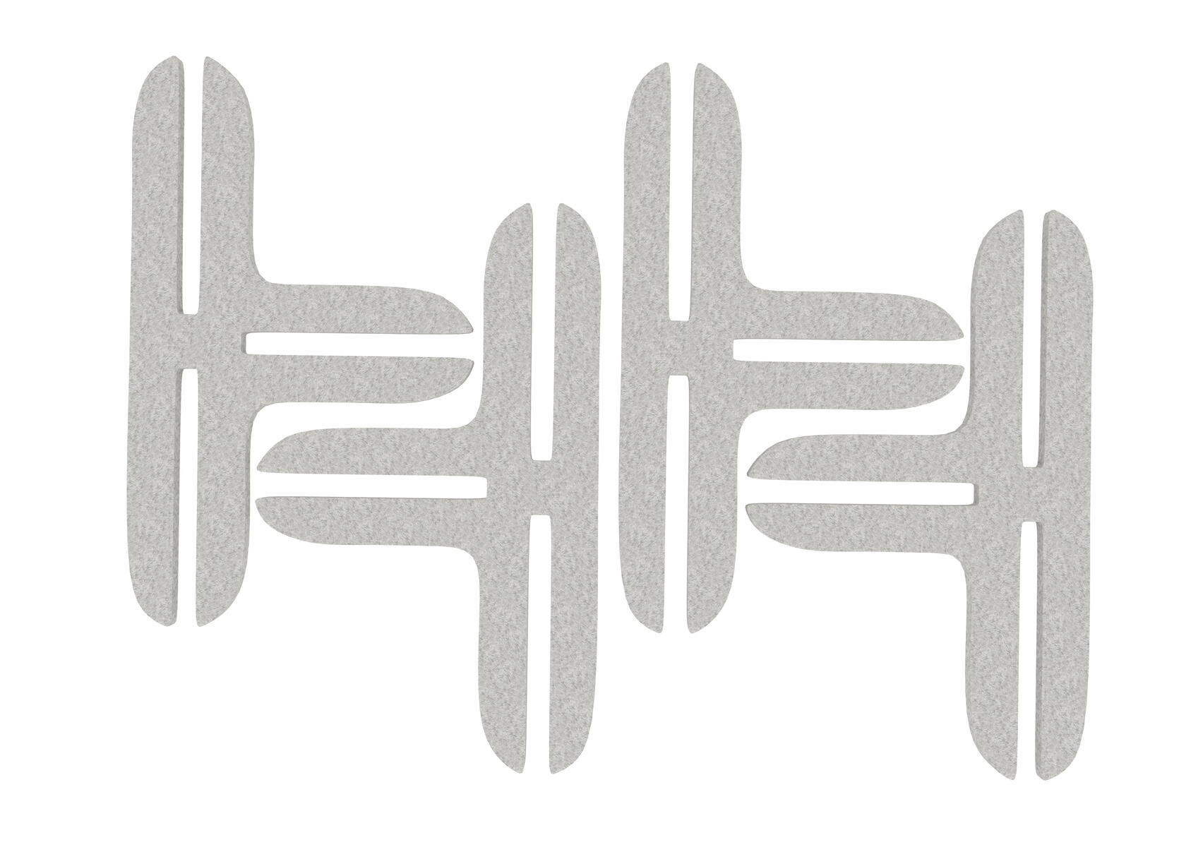 Tillbehör för serien Saga lekskärm. 4 st 3-vägsfästen som används för att bygga lekskärmar på olika sätt. Gjord i ljusgrå filt. Minst 50 % återvunnet material. 100 % återvinningsbar.