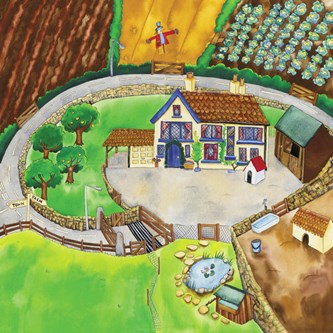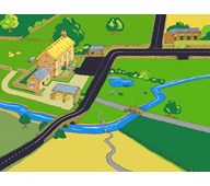 En härlig bondgårdsmatta som inspirerar till lek med djur, bilar och figurer. Genom en speciell vävteknik får mattan en annorlunda ytstruktur med 3-dimensionell effekt. Av polyester och bomull. Räfflad undersida, ej antiglid. Djur och tillbehör ingår ej. PVC-fri.