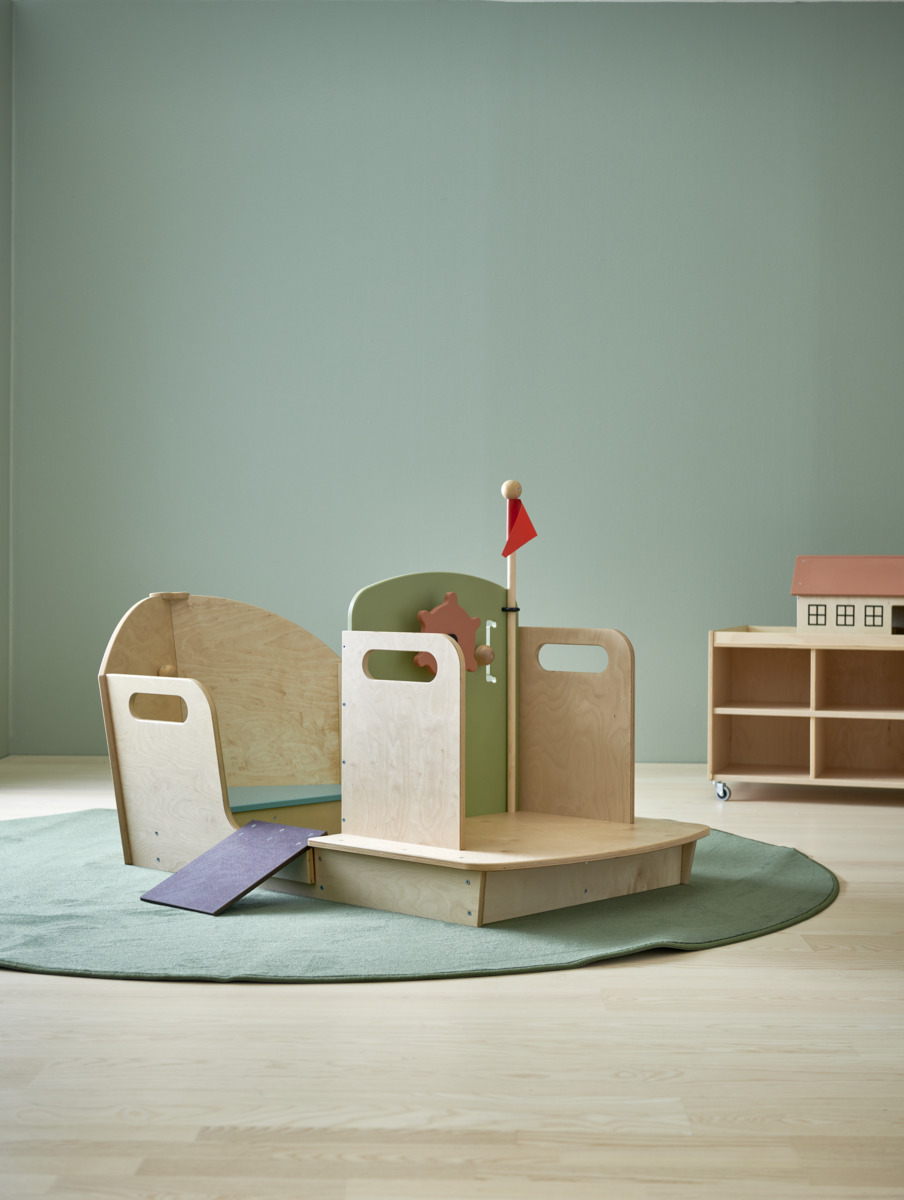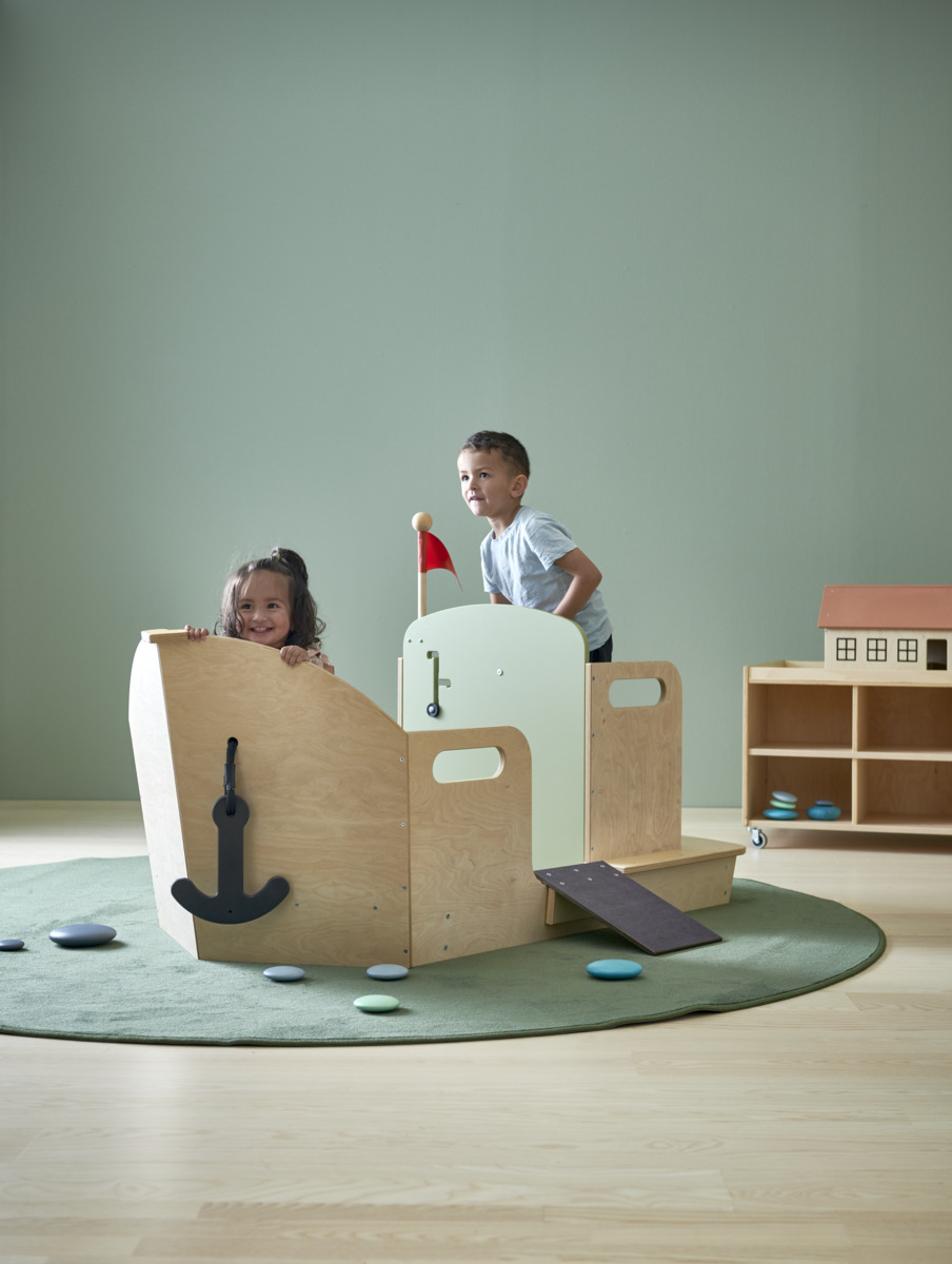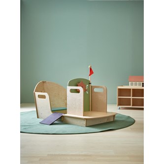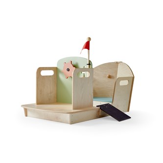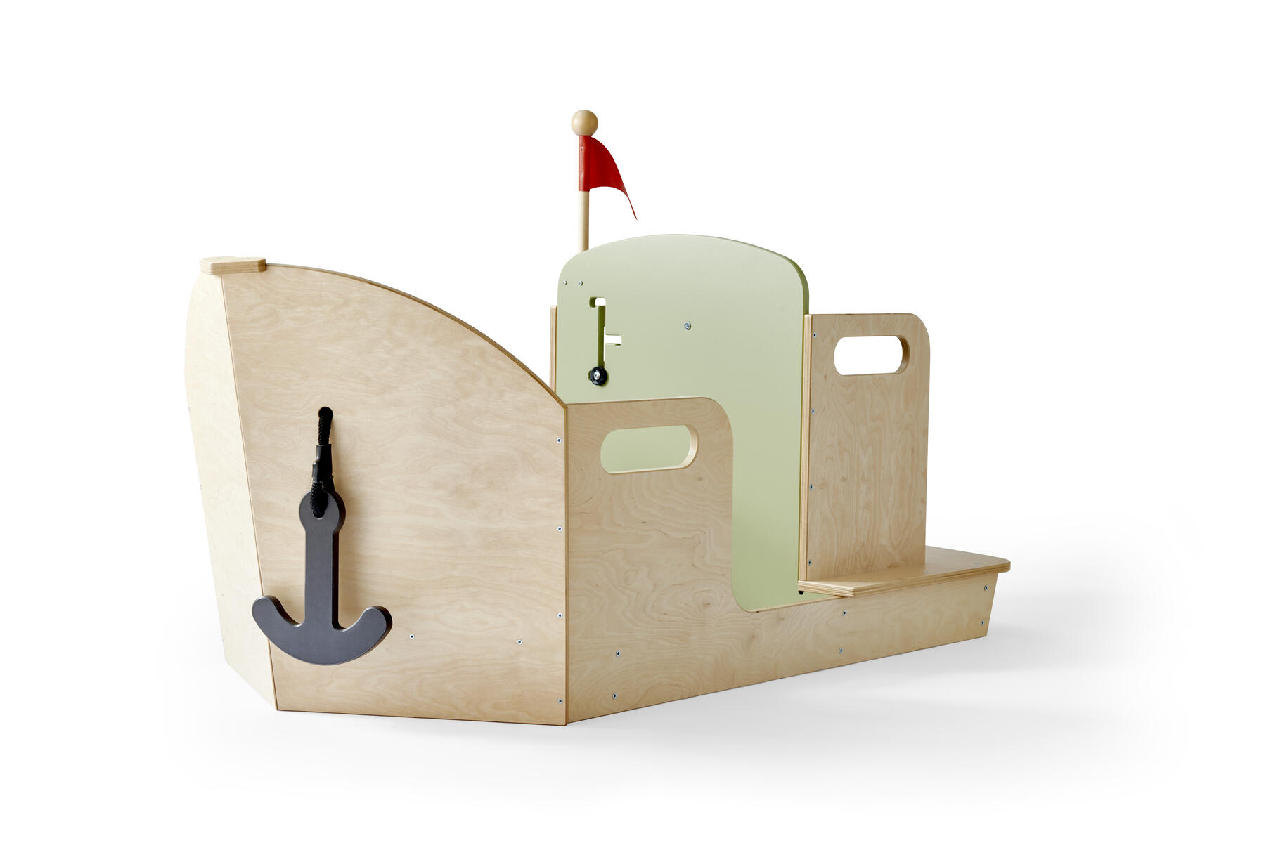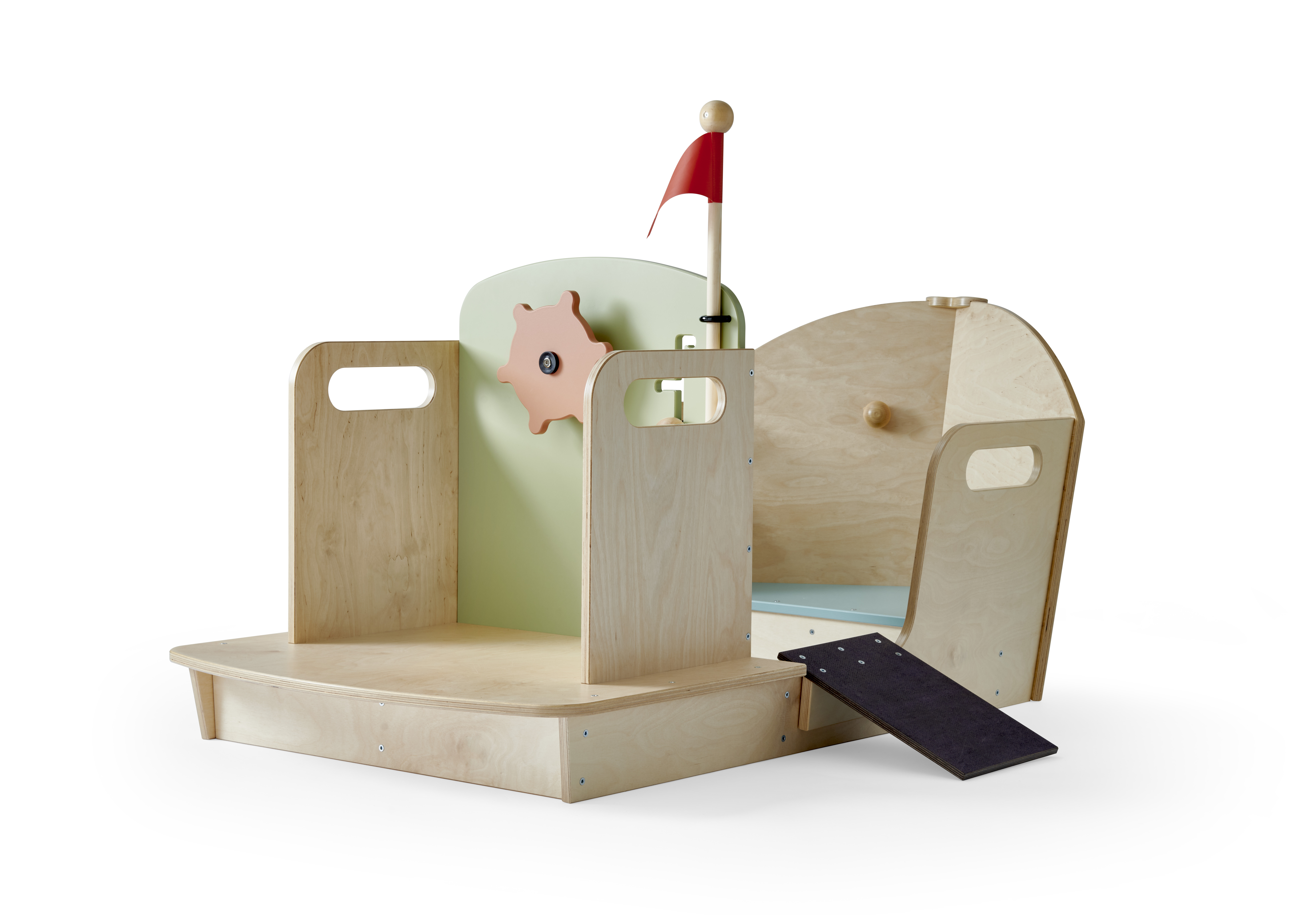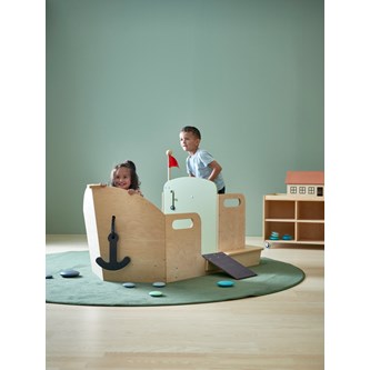 Kasta loss och ge er ut på äventyr på de 7 världshaven! Du kan lätt klättra in i båten, lätta ankar, dra in landgången, styra och dra i styrreglaget. En stabil och snygg lekbåt med utrymme för flera barn som snabbt kommer bli en favorit inomhus. Små hål i plywoodytorna som kan användas som titthål eller handtag. Av kraftig, lackerad, FSC-godkänd plywood. Levereras omonterad, monteringsanvisningar finns att skriva ut under fliken dokument.