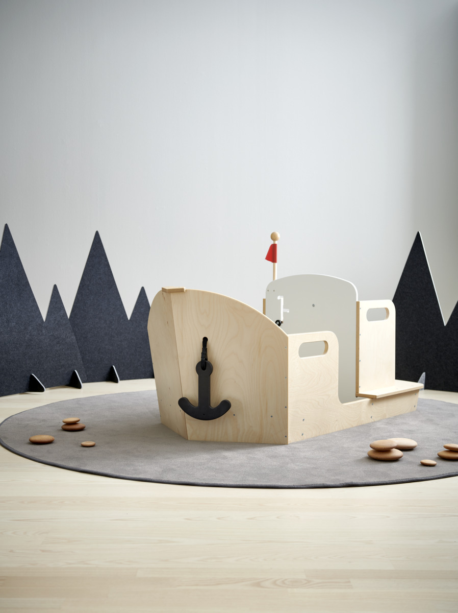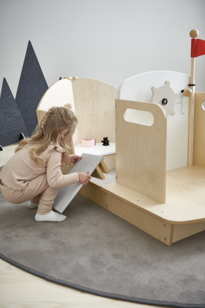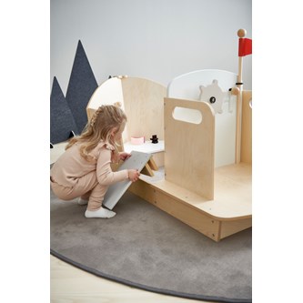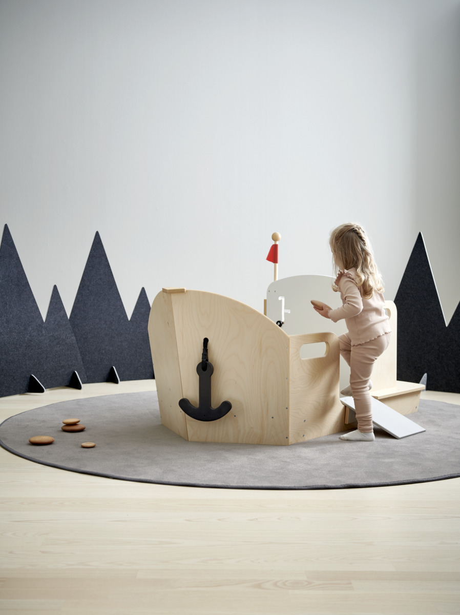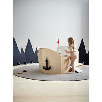 Kasta loss och ge er ut på äventyr på de 7 världshaven! Du kan lätt klättra in i båten, lätta ankar, dra in landgången, styra och dra i styrreglaget. En stabil och snygg lekbåt med utrymme för flera barn som snabbt kommer bli en favorit inomhus. Små hål i plywoodytorna som kan användas som titthål eller handtag. Av kraftig, lackerad, FSC-godkänd plywood. Levereras omonterad, monteringsanvisningar finns att skriva ut under fliken dokument.