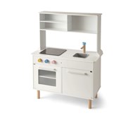 Ett lekkök med många olika funktioner som spishäll, ugn, rörliga vred, öppningsbara luckor, diskho samt bra hyllförvaring. Höga ben förenklar städning. Av FSC-märkt MDF. Diskbalja av PP. Levereras omonterad. Ska förankras i vägg. Mått: B78xD37xH101 cm. Från 2 år.