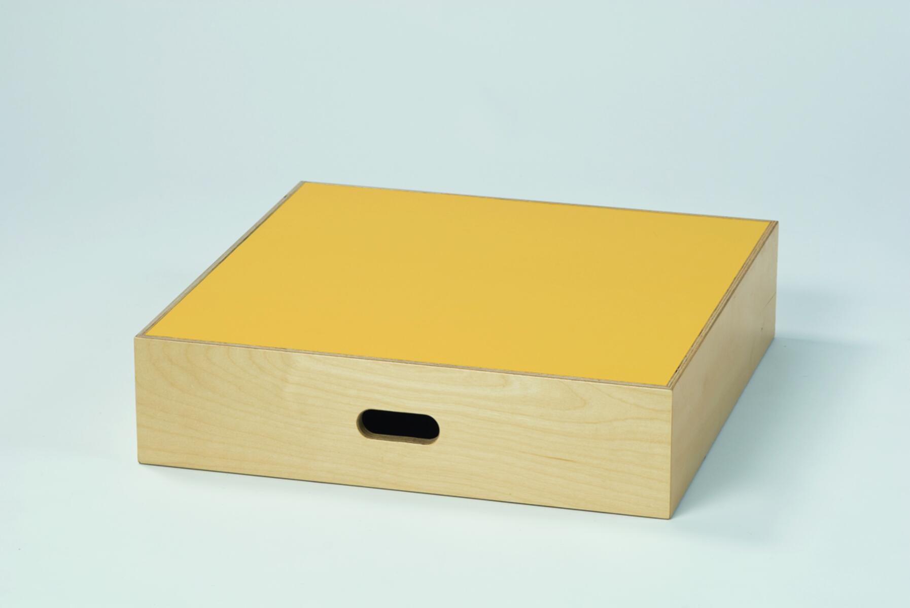 Tillhör Banserien. I denna serie kan man bygga banor efter eget önskemål. Finns i många utföranden. Barnen uppmanas att utveckla motoriska färdigheter samt socialt samspel. Är speciellt framtagen för de minsta barnen. Stomme i björk med topplager av naturgummi i olika färger. Bana med förvaring. Kan även användas som scenmodul. Lådornas mått: 28x27x22 cm. Mått: 60x60x25 cm. För barn 1–3 år.