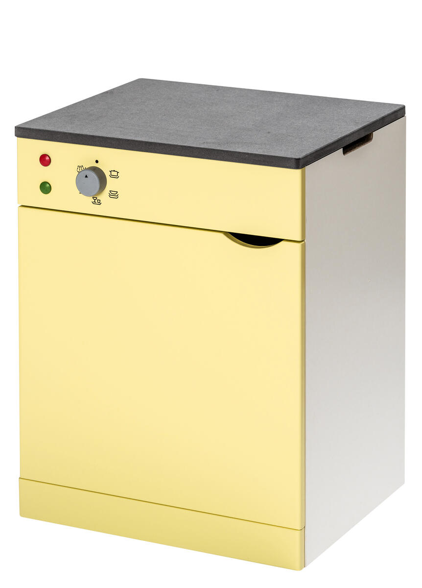 Diskmaskin till lekkök anpassat för förskolemiljö. Sidhängd dörr för optimal säkerhet, med handhål för enkel öppning. Utdragbar diskkorg. Lufthål/handtag på sidorna. Material: lucka, panel, sockel, överdel i MDF och stomme i 16 mm spånskiva. Färger koordinerade till övrigt sortiment. Mått: B45xD39xH59 cm. Lämplig från 3 år. Vikt 17 kg. Levereras omonterad.