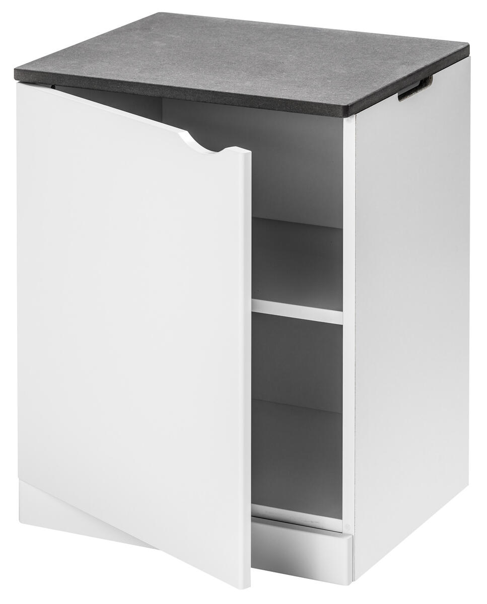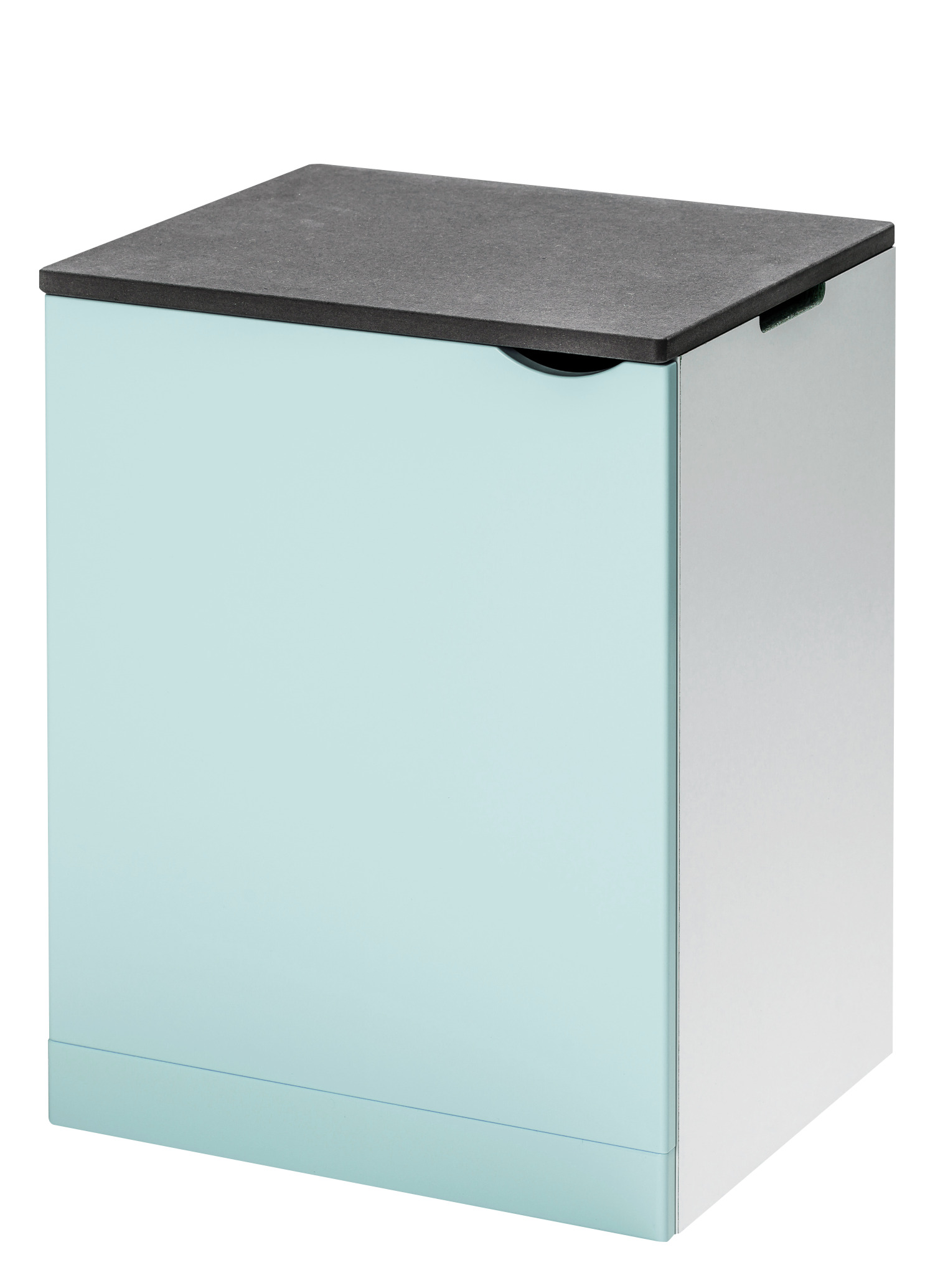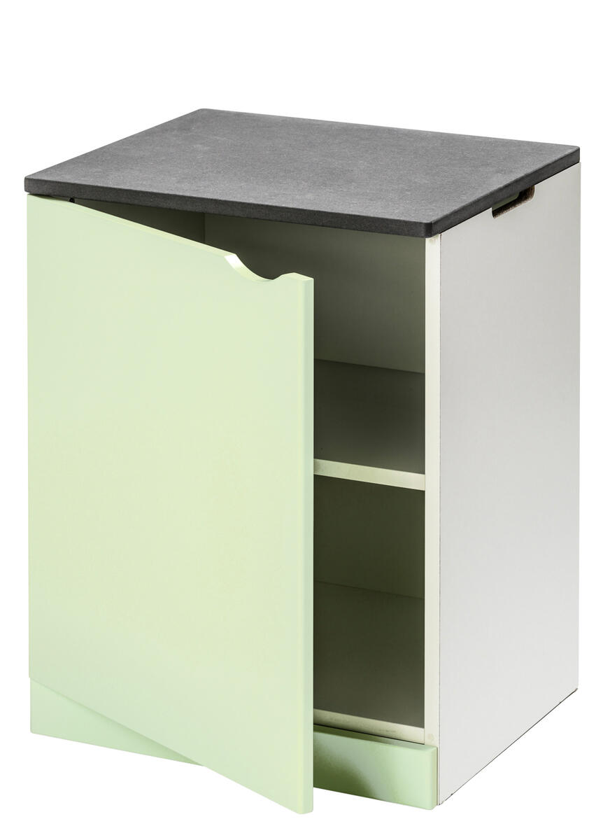 Köksskåp anpassat för förskolemiljö. Sidhängd dörr för optimal säkerhet, med handhål för enkel öppning. Lufthål/handtag på sidorna. Material: lucka, sockel, överdel i MDF och stomme i 16 mm spånskiva. Färger koordinerade till övrigt sortiment. Mått: B45xD39xH59 cm. Lämplig från 3 år. Vikt 16 kg. Levereras omonterad.