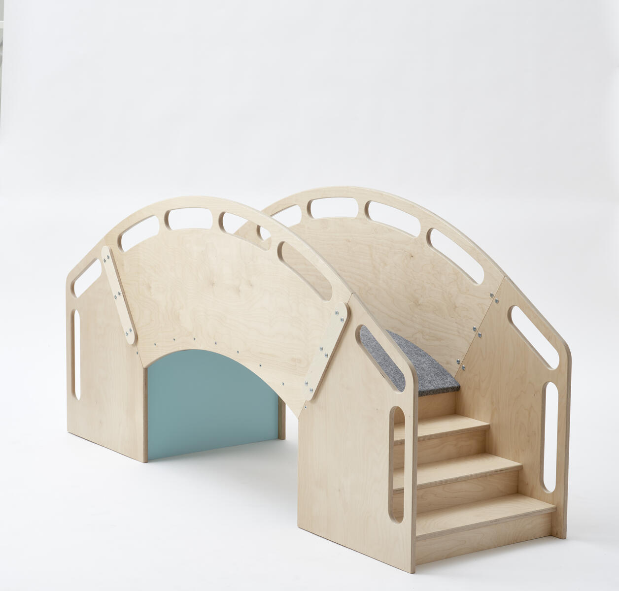 Lekbro i björkplywood, färgkoodinerad med resten av vårt Playwoodsortiment. Mycket hög kvalitet och ordentlig stabilitet. Lekmöbel för de mindre barnen. Bruse bro används lätt som rekvisita till sagan men kan även vara en grund för en rolig miljö om man låter fantasin flöda. Bra för motorisk träning då man kan gömma sig under bron eller klampa över den. Själva gången på bron är klädd med en grå nålfiltmatta för att minska halkrisken. Lätt att rengöra: dammsug mattan och torka bron med fuktig trasa. Mått: L200xB60xH90 cm, öppning B90xH46 cm. Levereras monterad.