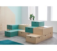 Kan användas som podium eller tunnel för de allra minsta. Den lilla delen och mellandelen skjuts in under den stora för platsbesparing när de inte används. Mått: liten del B46xD46xH23 cm, mellandel B53xD53xH26,5 cm, stor del B60xD60x30 cm. Mix består av vit, ljusgrå och grå HT. Design: Monika Mulder. Svanenmärkt, licensnummer 5031 0099.