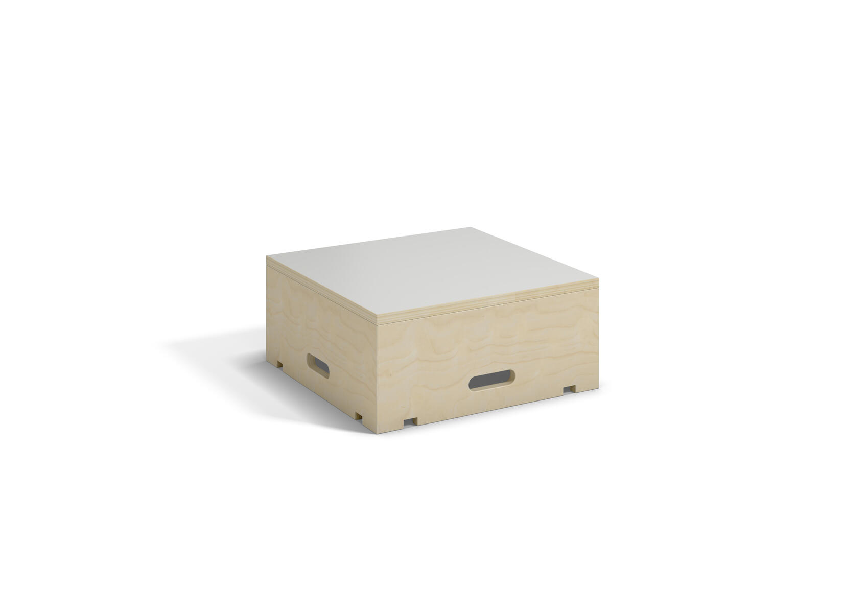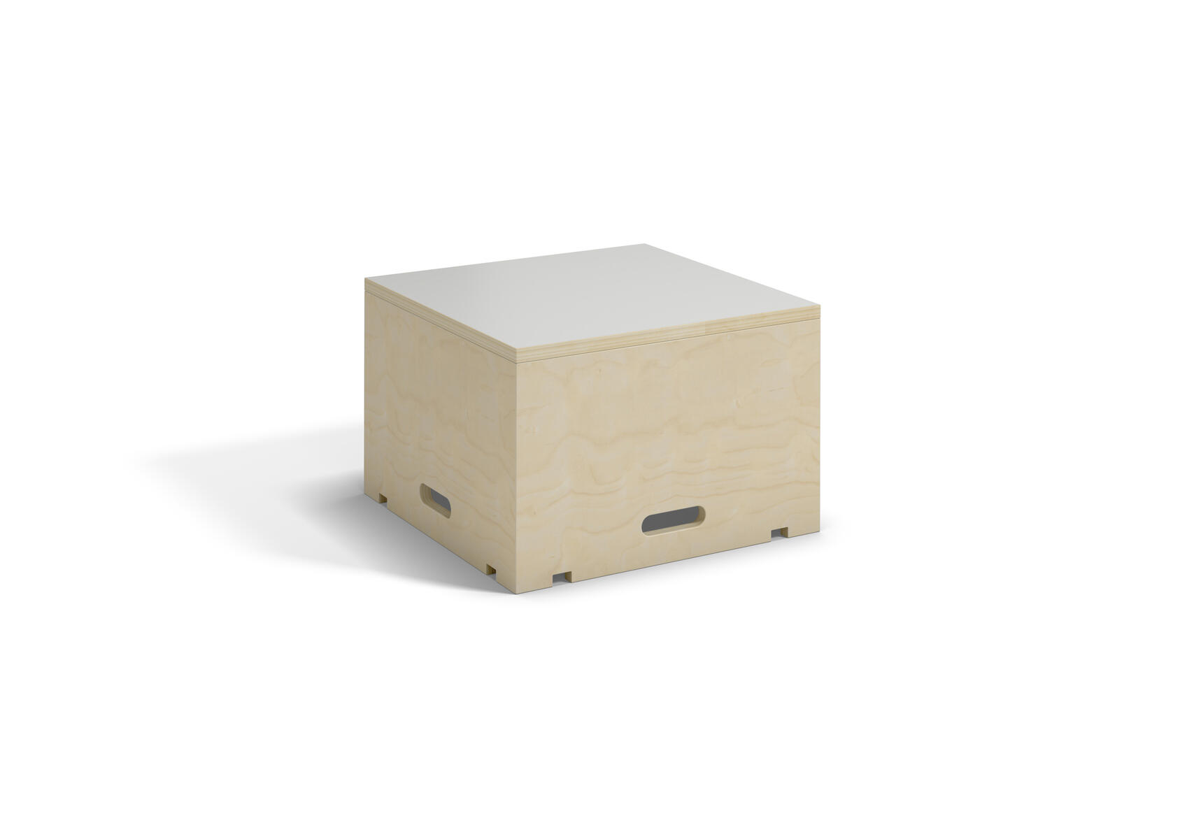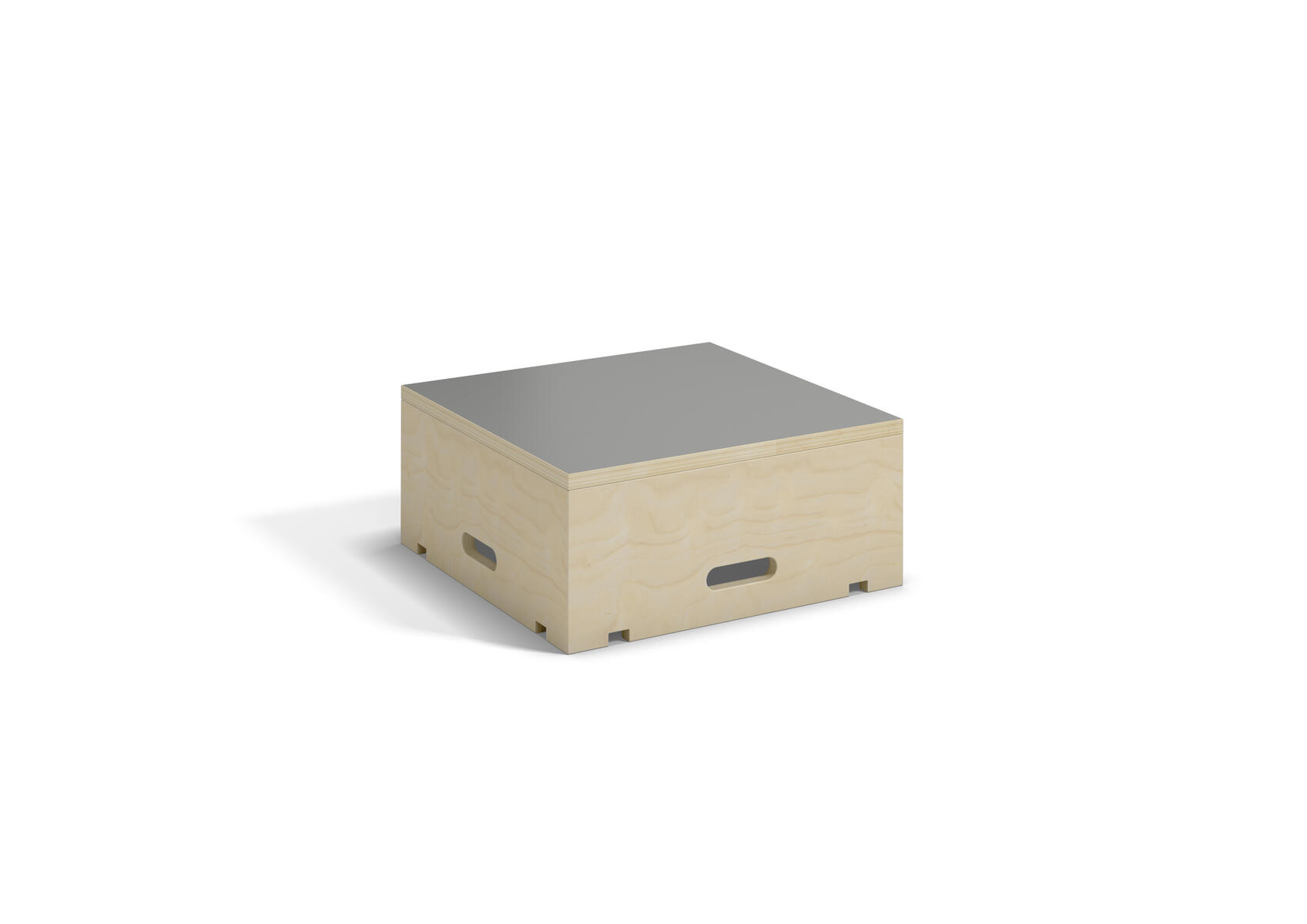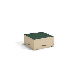 Scenmodul för förskola. Finns i många olika varianter som kan byggas ihop i oändliga former. Kan även byggas ihop med vårt Fixa förvaringssystem både på bredden och djupet. De kan bli scen, lekplats, olika fordon (vänd dem upp och ner) förvaring, utställning, fikaplats... bara fantasin sätter gränser. Tillverkade i 100 % björkplywood. Alla delar finns i höjderna 10, 20 och 30 cm. Helt i klarlack eller med färgad högtryckslaminat på toppen. Torkas ren med fuktig trasa. Mått: 36x31x36 cm. Svanenmärkt, licensnummer 5031 0099.