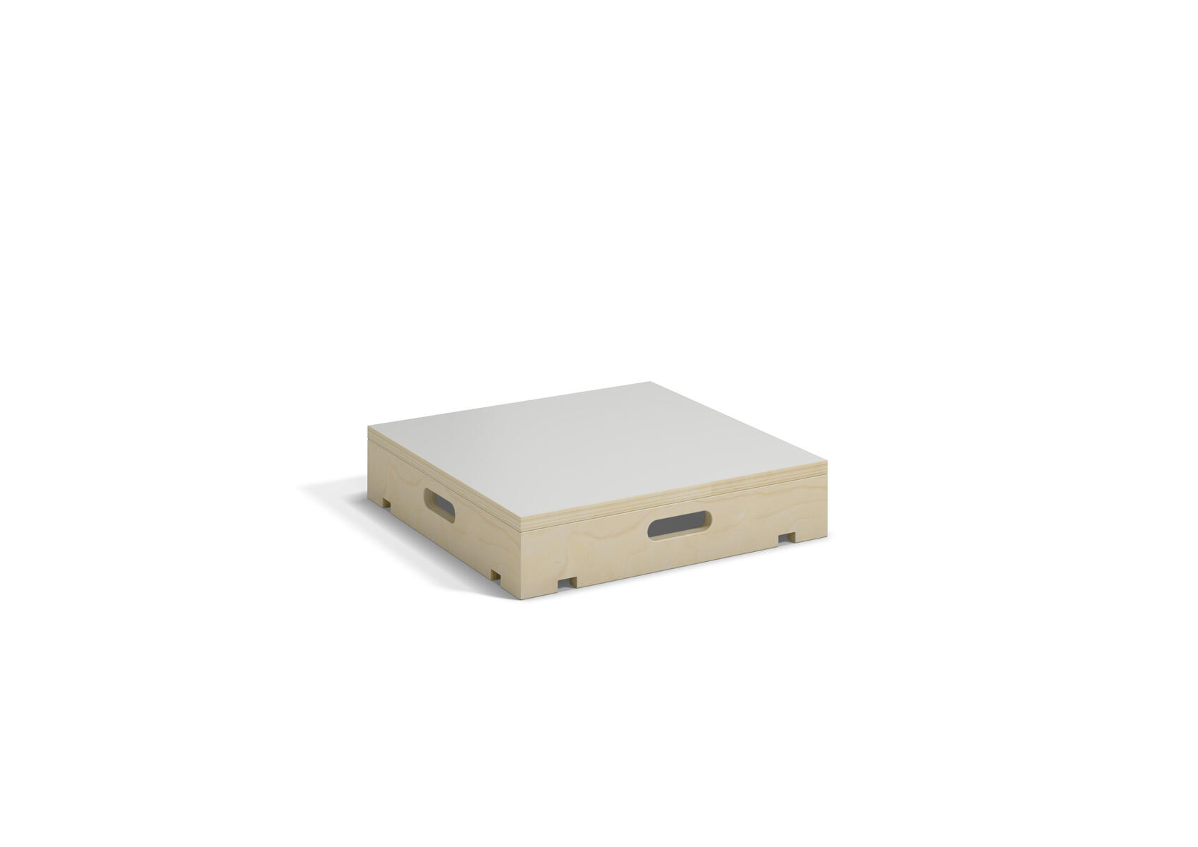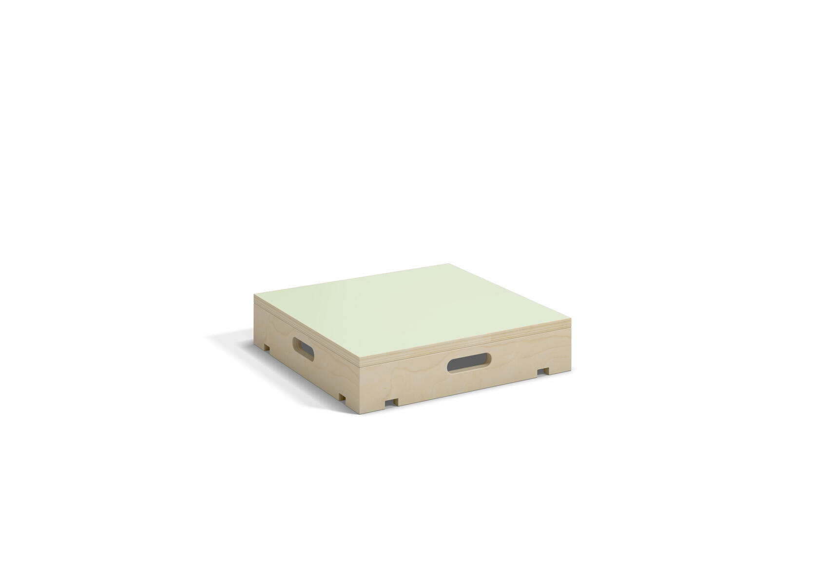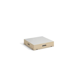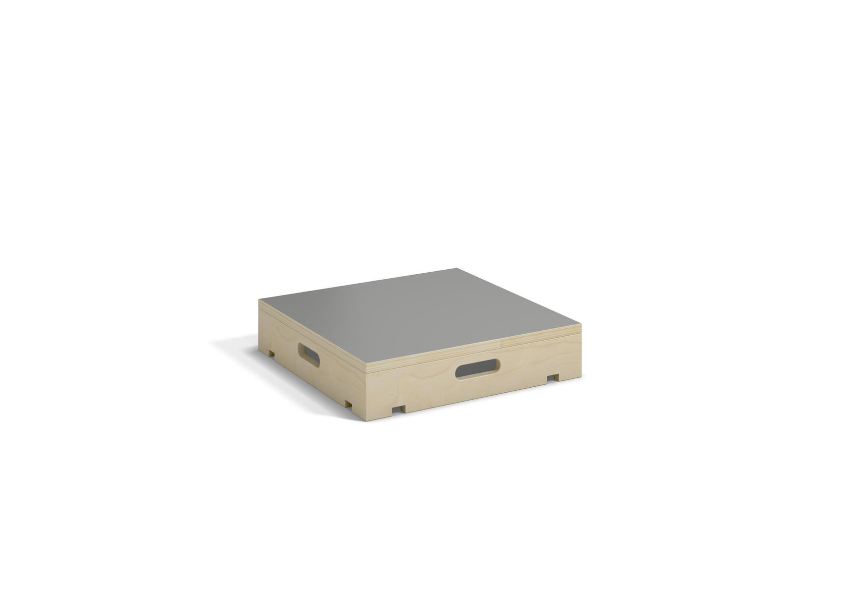 Scenmodul för förskola. Finns i många olika varianter som kan byggas ihop i oändliga former. Kan även byggas ihop med vårt Fixa förvaringssystem både på bredden och djupet. De kan bli scen, lekplats, olika fordon (vänd dem upp och ner) förvaring, utställning, fikaplats... bara fantasin sätter gränser. Tillverkade i 100 % björkplywood. Alla delar finns i höjderna 10, 20 och 30 cm. Helt i klarlack eller med färgad högtryckslaminat på toppen. Torkas ren med fuktig trasa. Mått: 46x46 cm. Svanenmärkt, licensnummer 5031 0099.