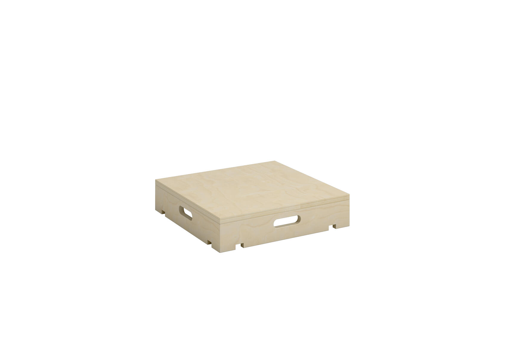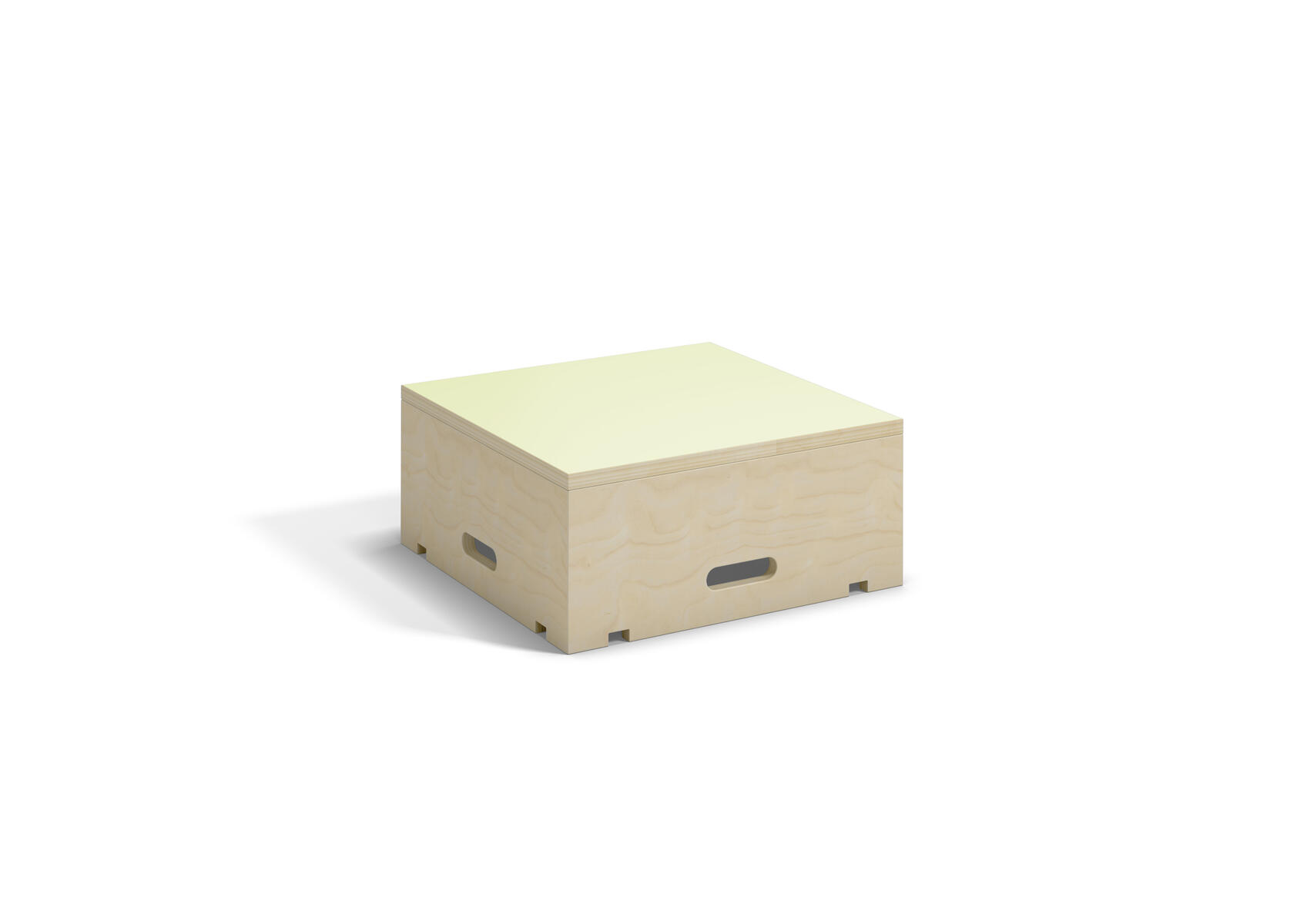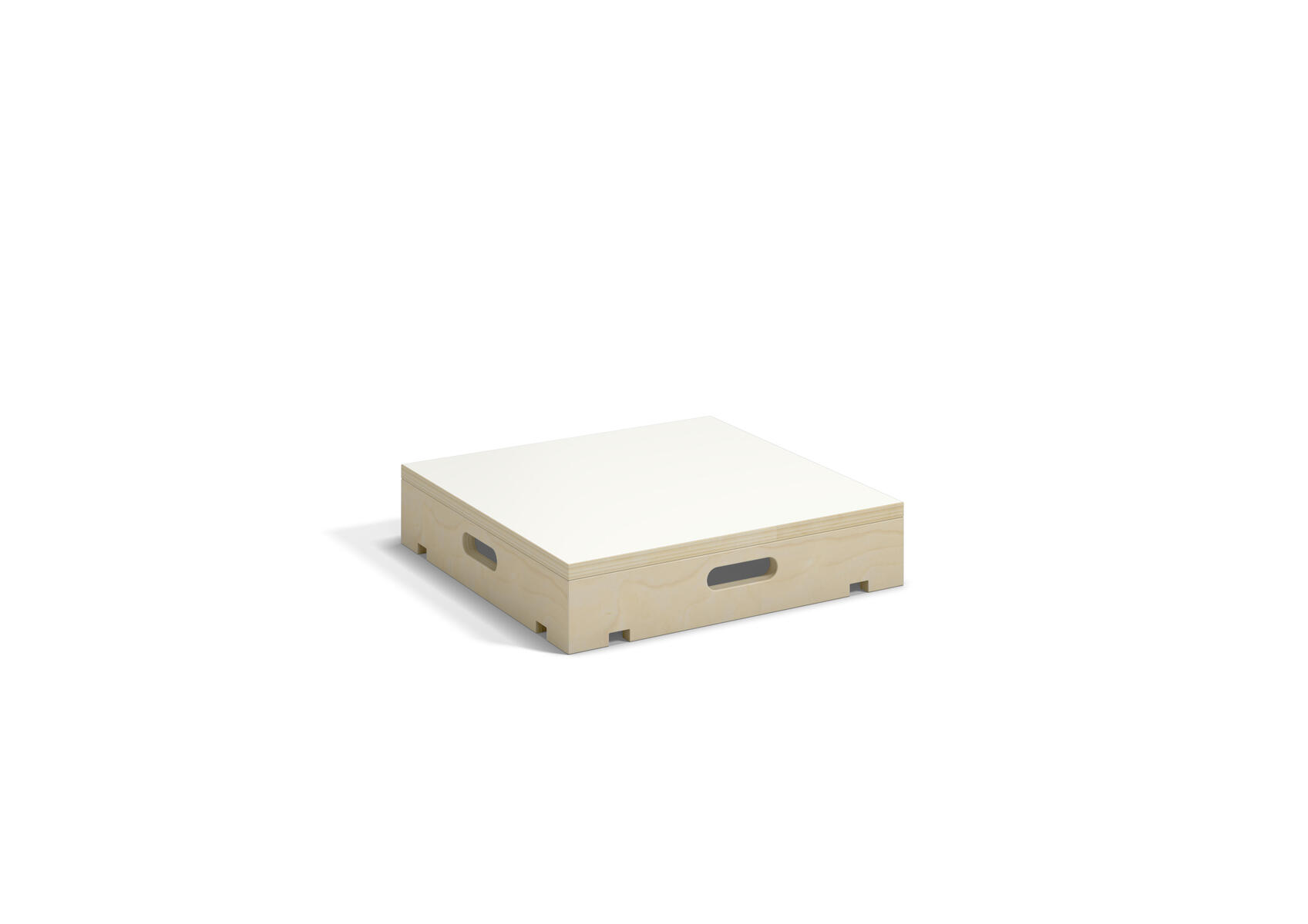 Scenmodul för förskola. Finns i många olika varianter som kan byggas ihop i oändliga former. Kan även byggas ihop med vårt Fixa förvaringssystem både på bredden och djupet. De kan bli scen, lekplats, olika fordon (vänd dem upp och ner) förvaring, utställning, fikaplats... bara fantasin sätter gränser. Tillverkade i 100 % björkplywood. Alla delar finns i höjderna 10, 20 och 30 cm. Helt i klarlack eller med färgad högtryckslaminat på toppen. Torkas ren med fuktig trasa. Mått: 46x46 cm. Svanenmärkt, licensnummer 5031 0099.