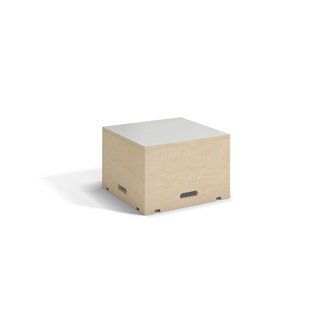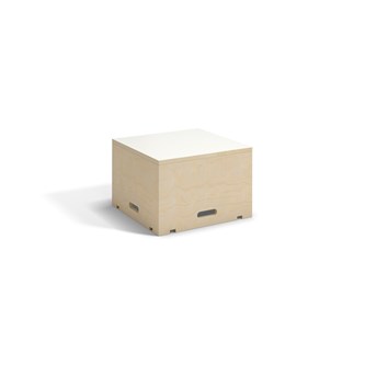 Scenmodul för förskola. Finns i många olika varianter som kan byggas ihop i oändliga former. Kan även byggas ihop med vårt Fixa förvaringssystem både på bredden och djupet. De kan bli scen, lekplats, olika fordon (vänd dem upp och ner) förvaring, utställning, fikaplats... bara fantasin sätter gränser. Tillverkade i 100 % björkplywood. Alla delar finns i höjderna 10, 20 och 30 cm. Helt i klarlack eller med färgad högtryckslaminat på toppen. Torkas ren med fuktig trasa. Mått: 46x36x41 cm. Svanenmärkt, licensnummer 5031 0099.