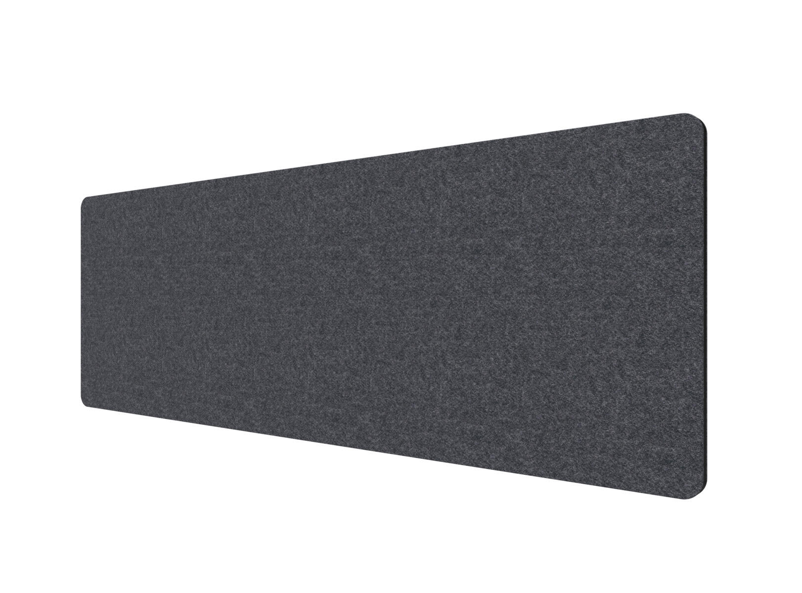 Bordsskärm med ram av massivt trä och en 3 cm tjock ljudabsorberande kärna. Ett utmärkt val för att skapa en mer privat och tyst arbetsplats. Alla fyra hörn är avrundade. Avstånd från bordsyta till skärmens överkant bestäms efter var du väljer att placera beslagen. Beslag för montering beställs separat på artnr 165906.