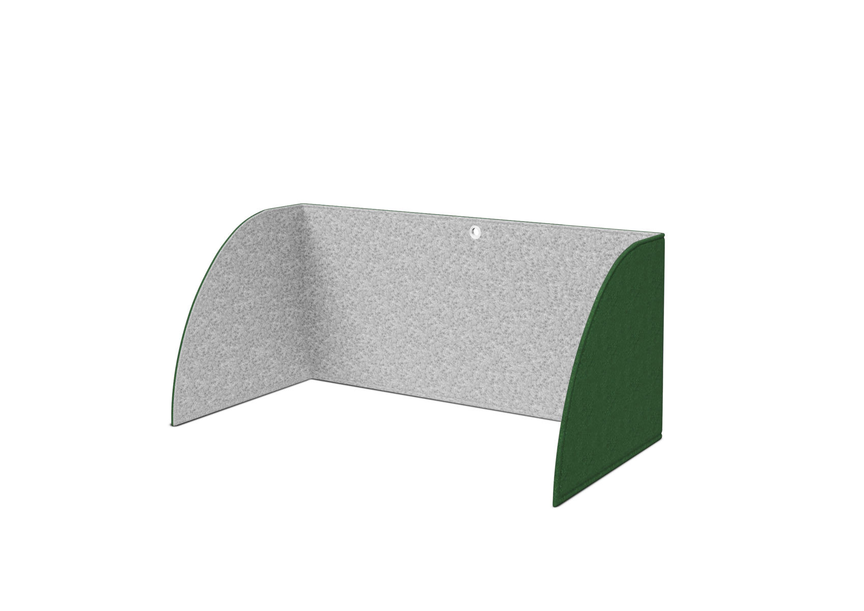 Ljuddämpande bordsskärm som ger hjälp med att fokusera på en uppgift. Skärmen består av tre delar som vinklas till önskat behov. Efter användning kan skärmen hängas på väggen och fungerar då som en ljudabsorbent. Mått: 100x50x50 cm. Material: Syntetfilt av minst 50 % återvunnet material. 100 % återvinningsbar.