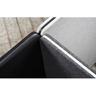 Edge ljudabsorbenter dämpar mycket effektivt störande ljud som kan uppstå i omgivningen. Skärmväggarna passar in i alla miljöer, oavsett om målet är att skapa arbetsplatser eller trivsamma, gemensamma utrymmen. Med skärmväggarna avgränsas smidigt rum-i-rummet. Inbyggda magneter ger golvskärmarna en unik kopplingsfunktion. Magnetiska kopplingsbeslag finns för alla ytterligare uppställningar. Fötter beställs separat, se tillbehör.