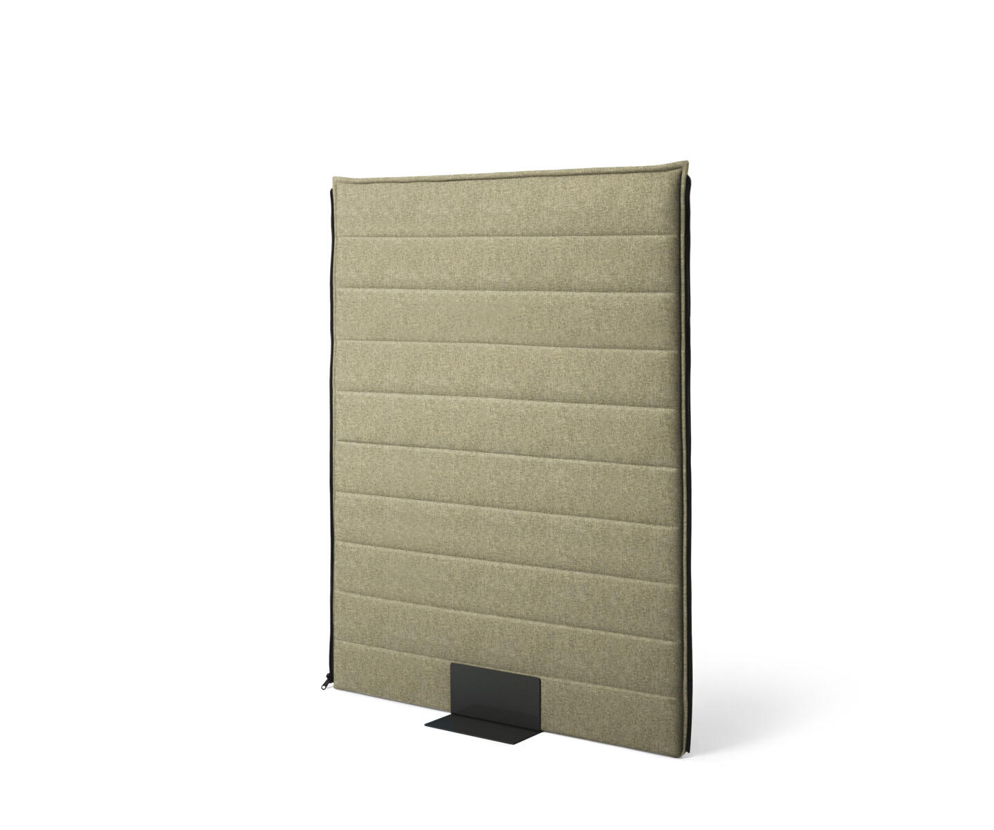 Skärmar som enkelt sätts ihop med zip-funktion och som kan justeras i olika vinklar för anpassad ljuddämpning och avgränsning. Låg och platt metallbas.