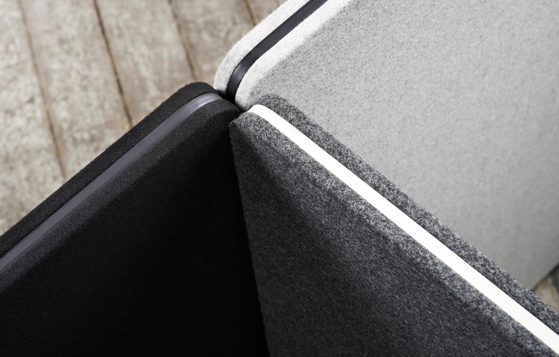 Edge ljudabsorbenter dämpar mycket effektivt störande ljud som kan uppstå i omgivningen. Skärmväggarna passar in i alla miljöer, oavsett om målet är att skapa arbetsplatser eller trivsamma, gemensamma utrymmen. Med skärmväggarna avgränsas smidigt rum-i-rummet. Inbyggda magneter ger golvskärmarna en unik kopplingsfunktion. Magnetiska kopplingsbeslag finns för alla ytterligare uppställningar. Fötter beställs separat, se tillbehör.