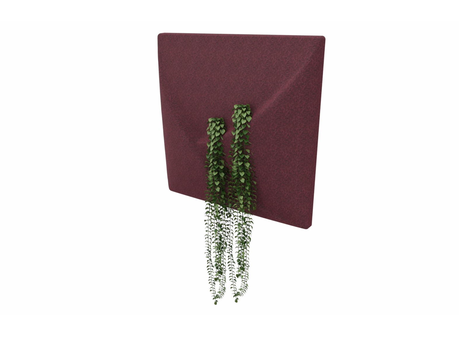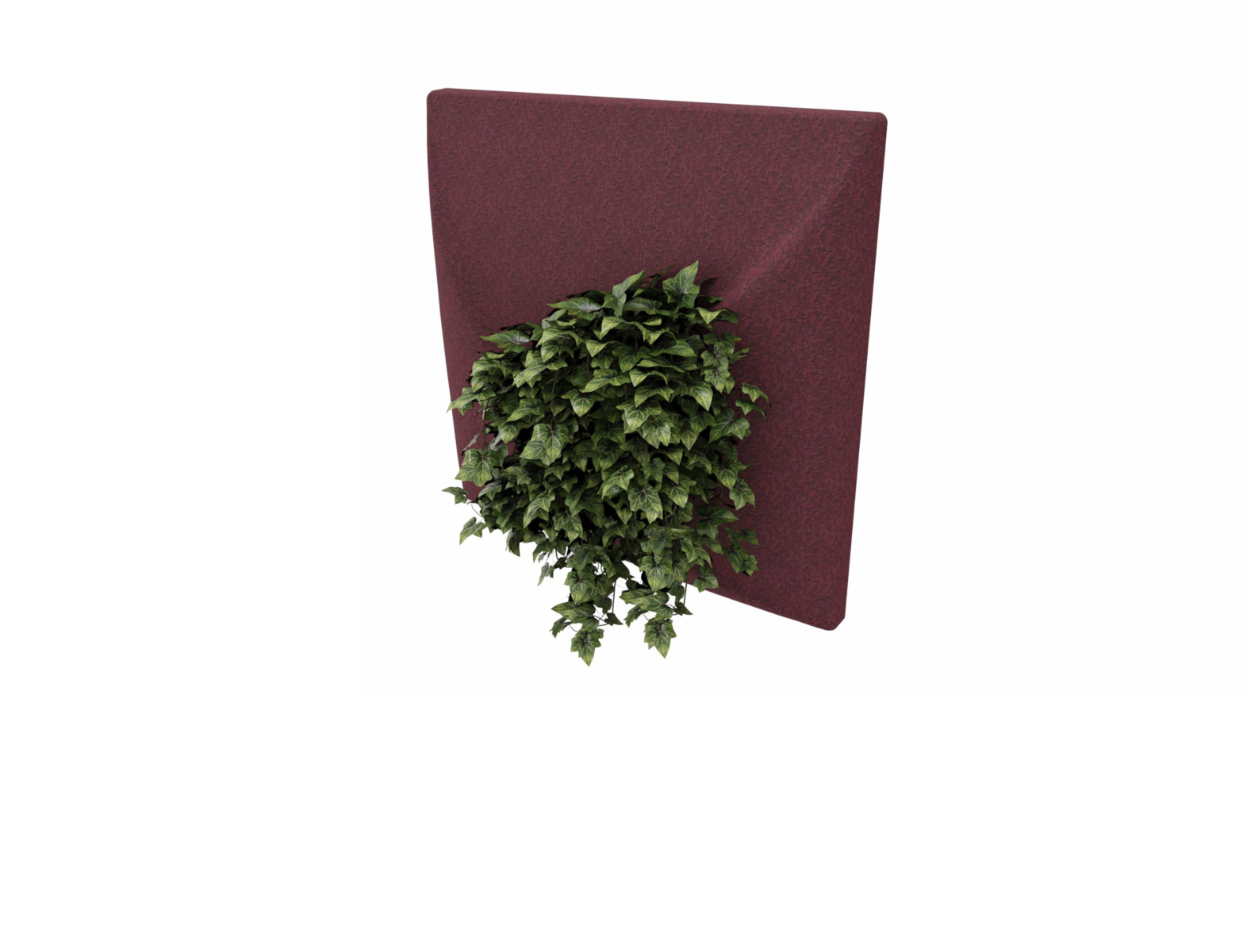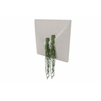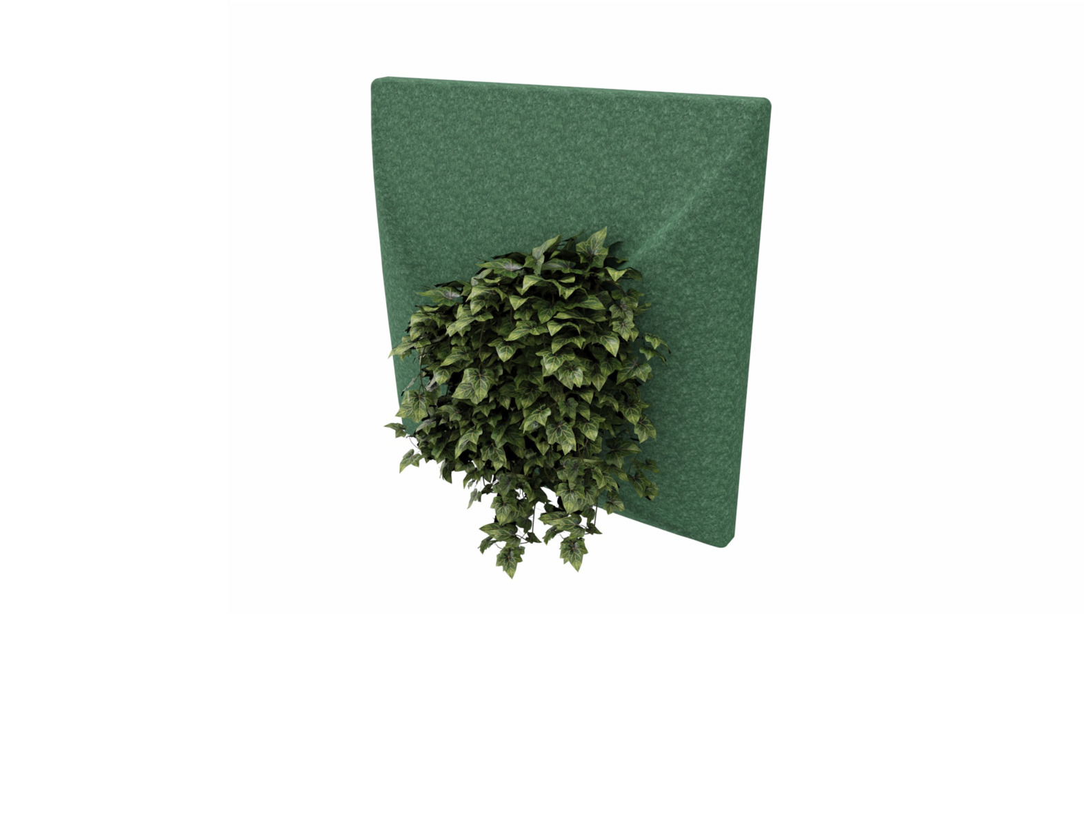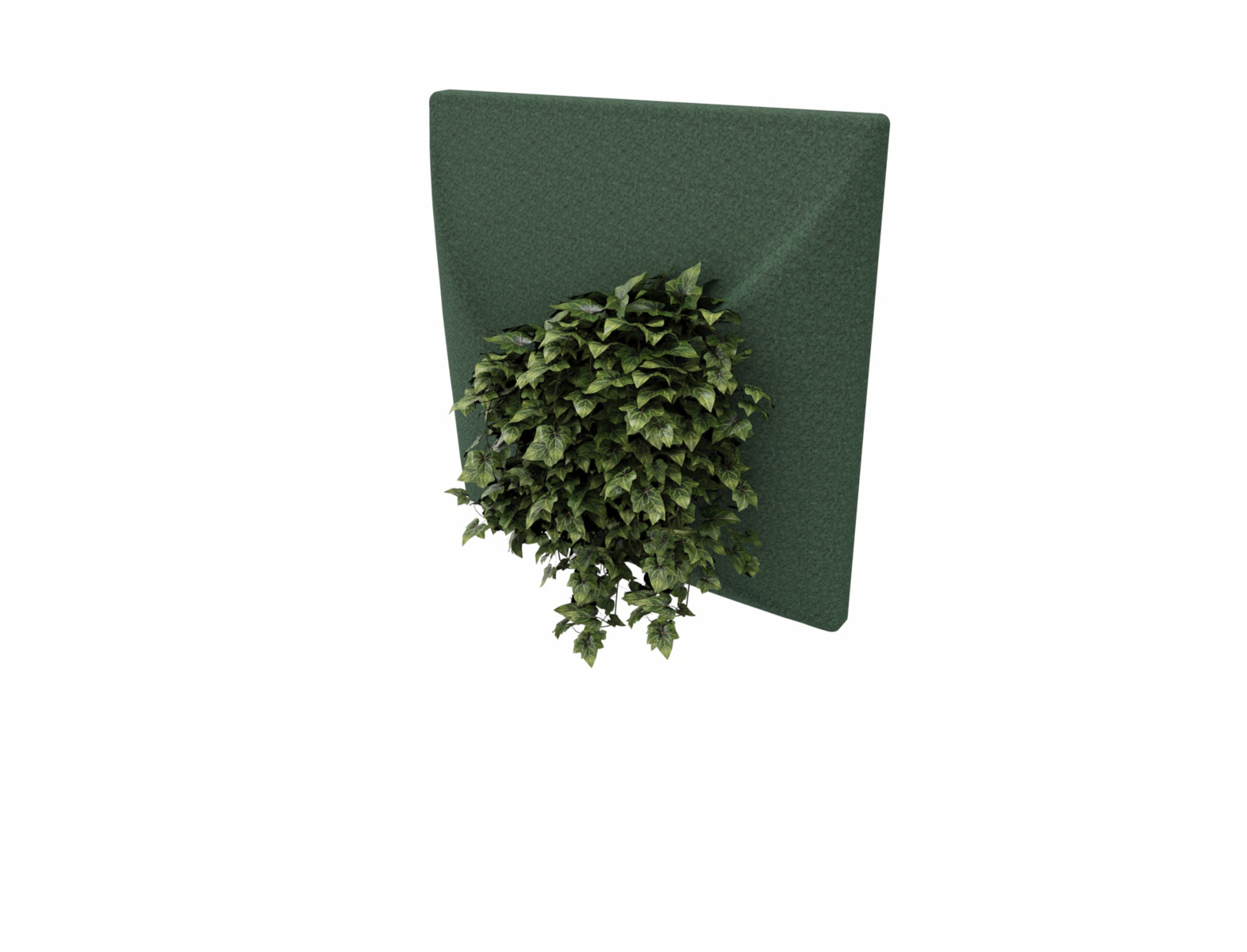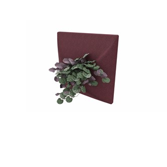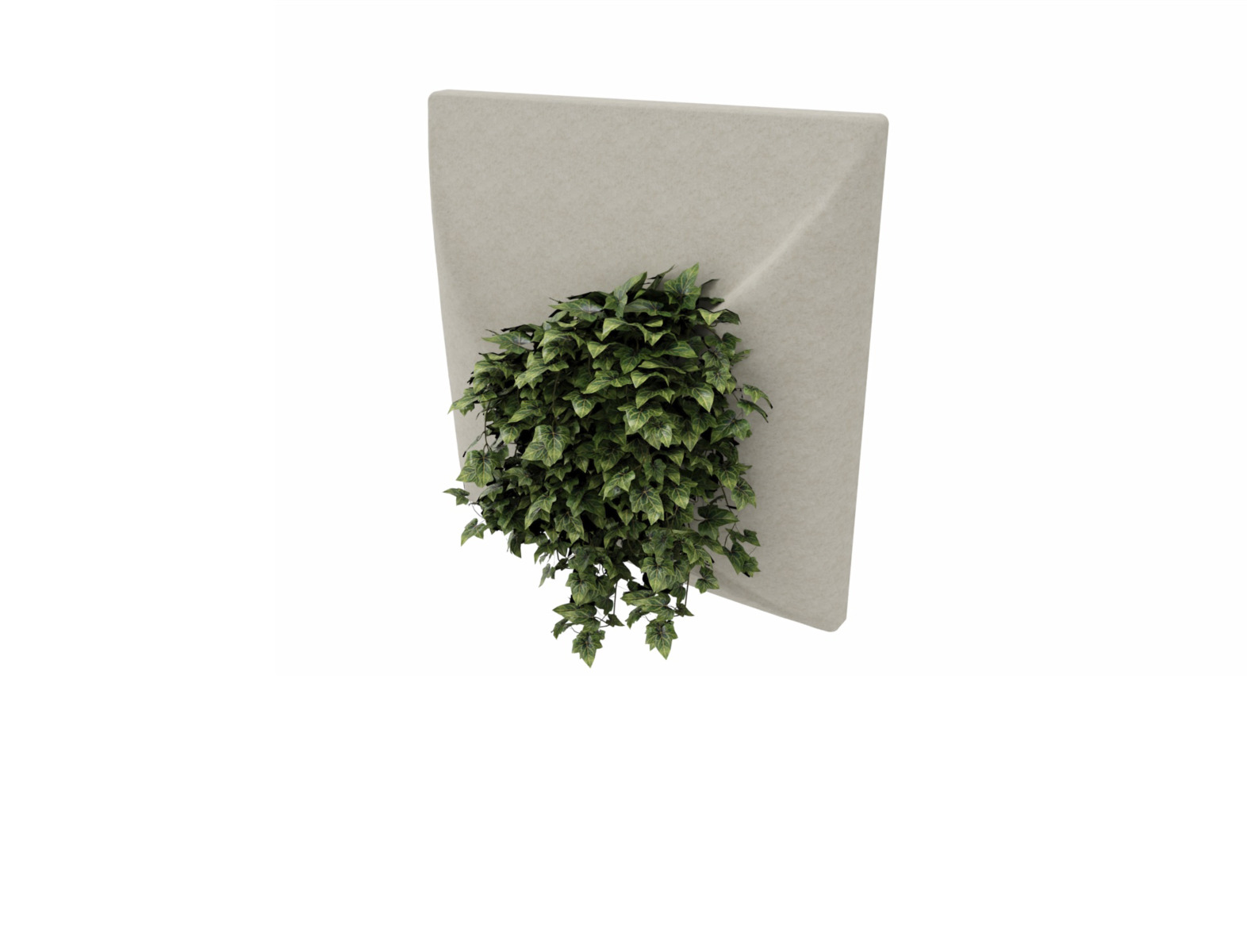 Väggdekoration i formpressad filt i minst 55 % återvunnen PET. EcoSUND-platta monterad bakom panelen för 30 % bättre ljudabsorption. Det böljande mönstret skapar en häftig visuell effekt. Växterna levereras utan kruka, stjälken placeras i de förstansade hålen. Monteras på vägg med list, upphängningslist ingår.