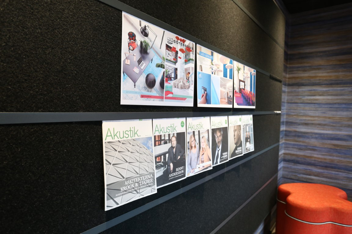 40 mm tjock superljudabsorberande väggpanel som kan användas som anslagstavla. Dock reduceras dämpningseffekten om panelen täcks med papper eller liknande. 2 olika storlekar, 130x130 cm eller 130x280 cm. Ram med mjukt avrundade kanter i aluminium alt. vitlackerad aluminium. Brandgodkänd i klass A1. Svanengodkänd.