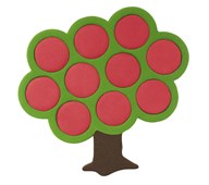 Äppelträd med 10 st sittdynor. Väggdekoration som hängs på väggen och fungerar som ljudabsorbent. Barnen kan själva plocka äpplena. Äpplena kan sedan användas som sittkuddar vid samlingar etc. Mått: Träd 125x125 cm. Mått på sittkudde: ø 25 cm, tjocklek 6 cm. Tyg på sittkudde avtagbart och tvättbart i 30 °C.