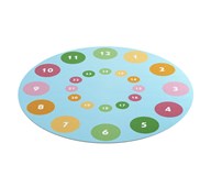 Matta med tryckt klocka. Baksida med halkfri gummibeläggning. Mattan fungerar på värmegolv. Mått: ø 200 cm. Lugghöjd 3 mm. 100 % öglad polyamid. Får inte läggas på fuktiga golv.