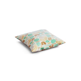 Kudde med avtagbart fodral i 100 % återvunnen polyester. Innerkudde i 100 % polyester. Fodralet är tvättbart i 60 °C.