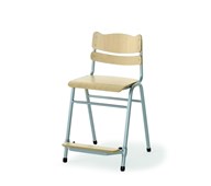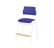 Steglöst reglerbart fotstöd. Stapelbar. Stativfärger: grafitgrå, vit eller silver. Sitthöjd: 50 cm. Sitsmått: B36xD35 cm. Vikt 4,9 kg. Sits och rygg i faner.