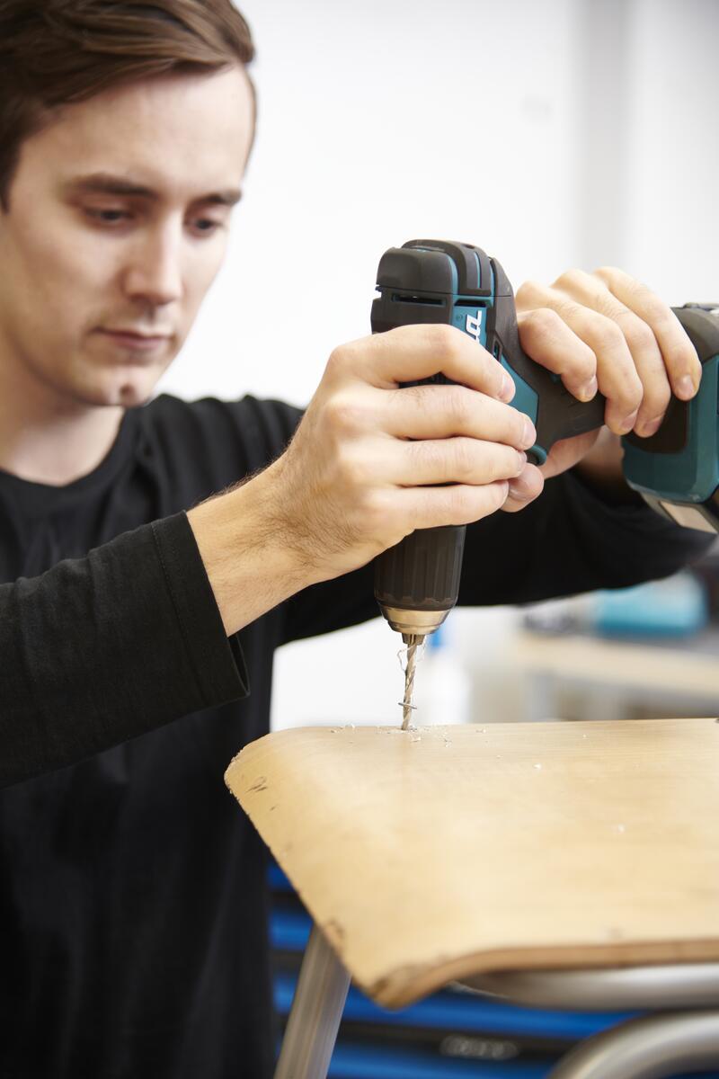 Stapelbar (max 4 st/stapel). Ljuddämpande tassar. Upphängningsbar på bord. Reglerbar fotbräda i 3 fasta lägen. Sitthöjd: ställbar till 57, 60 eller 63 cm. Sitsmått: B36xD35 cm. Totaldjupet på stativet är 54 cm. Vikt 6,4 kg. Sits och rygg i högtryckslaminat. Silverlackerat stativ, RAL 9006.