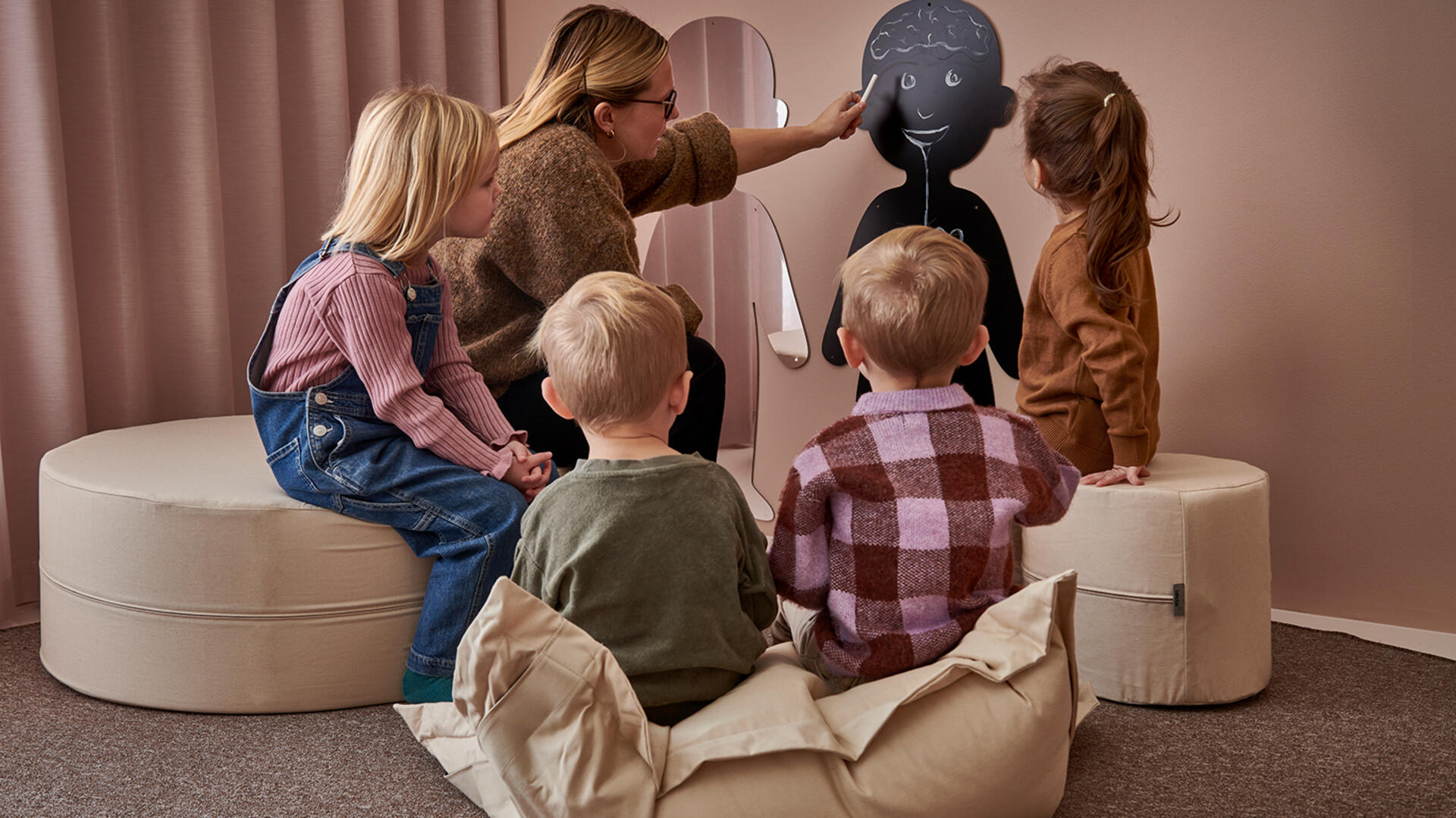 En liten sittpuff är ett utmärkt val för de yngre barnen, både för samlingsstunder och som en del av mjuklek. Med en kärna av kallskum ger den både komfort och stöd, och det avtagbara fodralet gör den lätt att hålla ren, vilket är praktiskt i en miljö med mindre barn.
