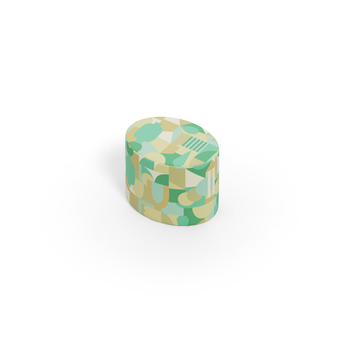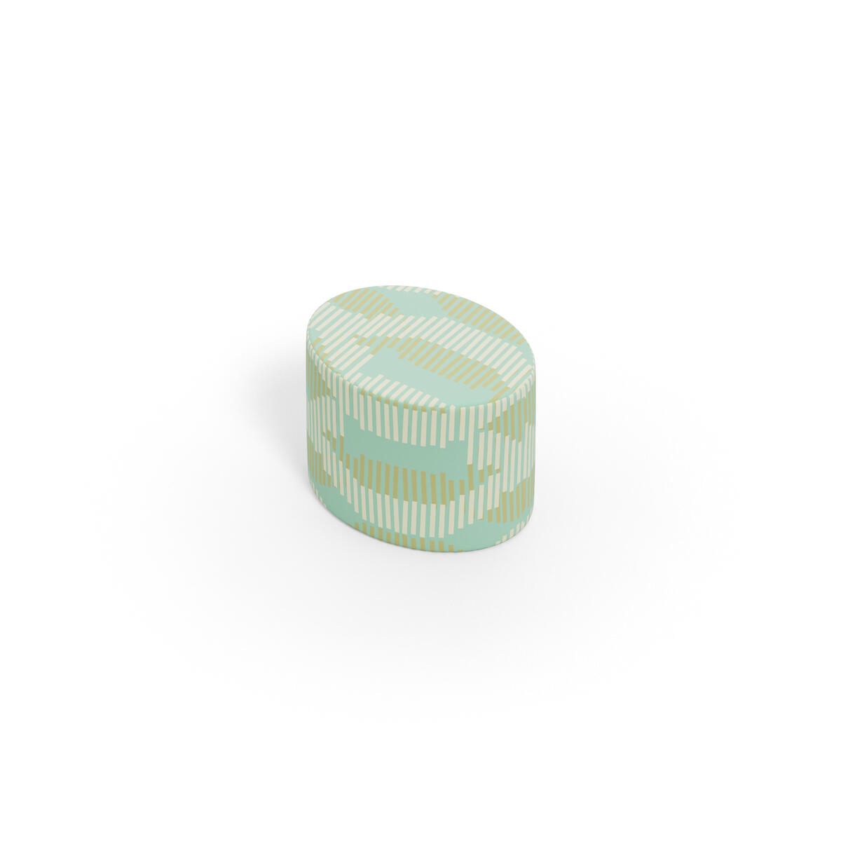Oval sittpuff. Avtagbart fodral i 100 % polyolefin vilket gör att den kan användas både inne och ute. Mått: 40x30x30 cm. Kärnan är av kallskum. Fodralet är tvättbart i 30 °C, ingen torktumling.