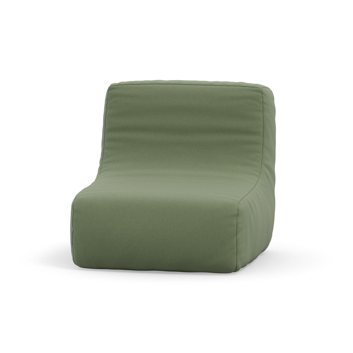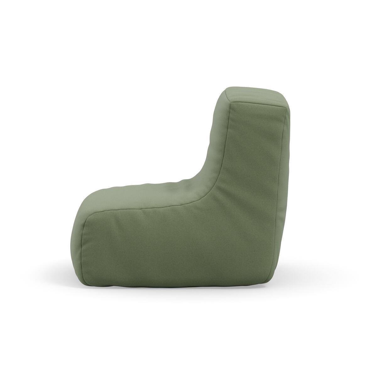 Sittsäck utformad som en fåtölj. Avtagbart fodral i 100 % polyolefin vilket gör att den kan användas både inne och ute. Mått: 79x95x85 cm. Innersäck med en blandning av riven polyeter och ftalatfria polystyrenkulor som ger stabilare form och bekvämare sits. Fodralet är tvättbart i 30 °C, ingen torktumling.