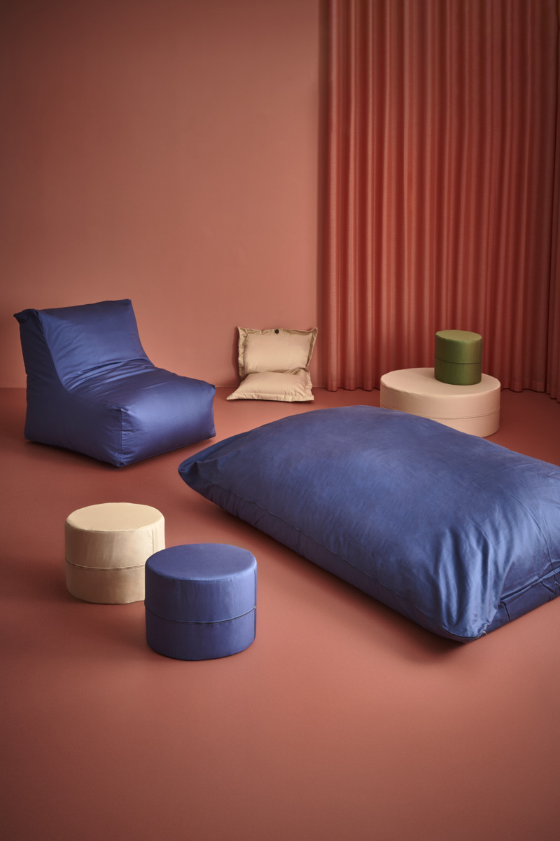 En liten sittsäck för de minsta barnen. Här kan de slappna av med en bok eller mysa med sin nalle. Avtagbart fodral i 100 % polyolefin vilket gör att den kan användas både inne och ute. Mått: 70x100 cm. Innersäcken rymmer 60 L ftalatfria polystyrenkulor. Fodralet är tvättbart i 30 °C, ingen torktumling.