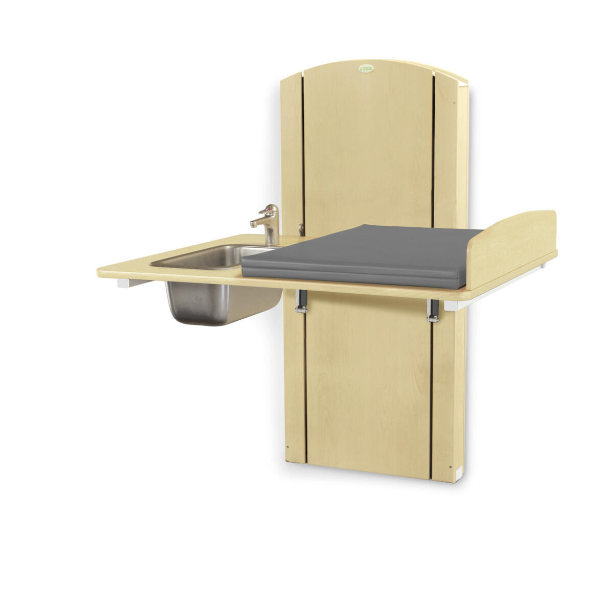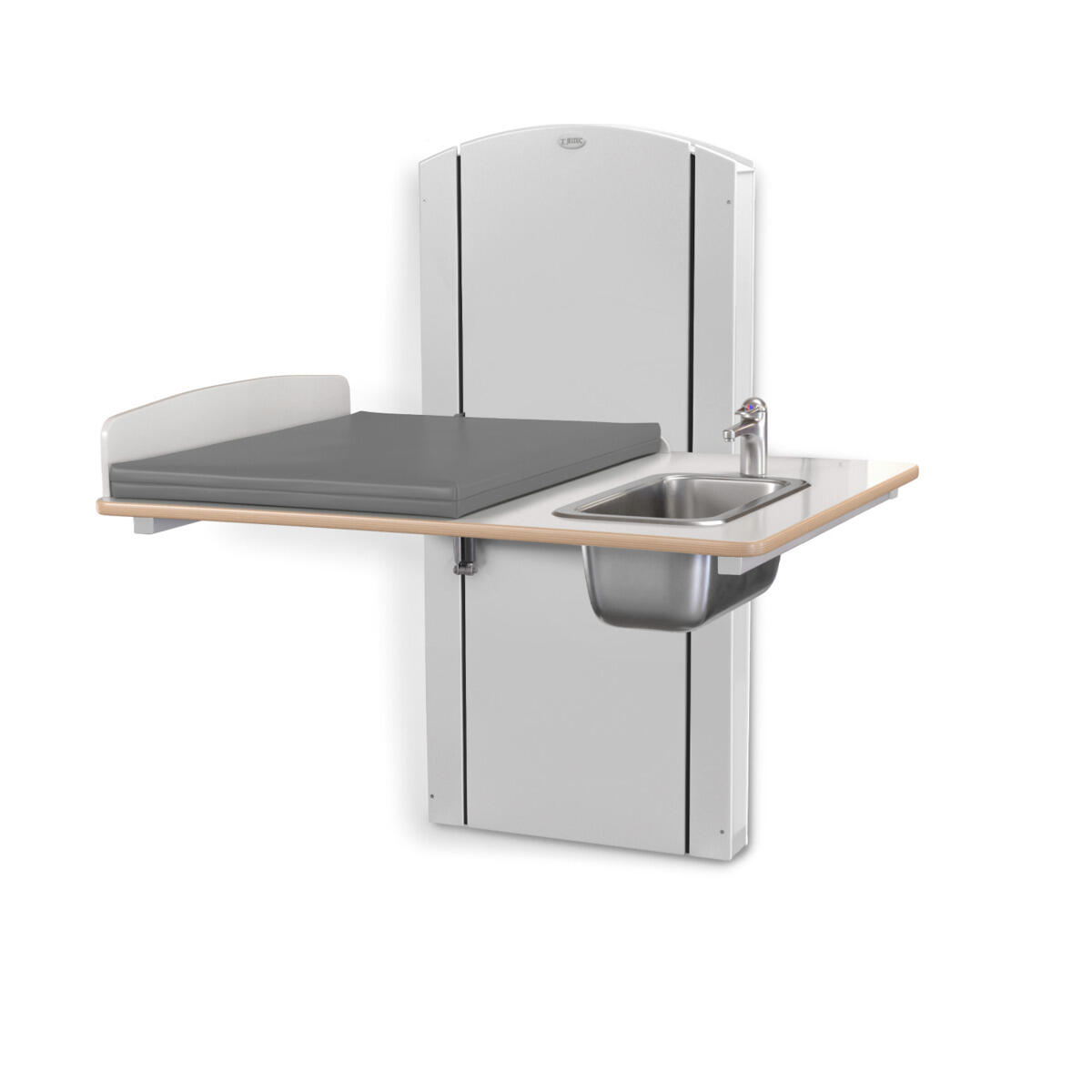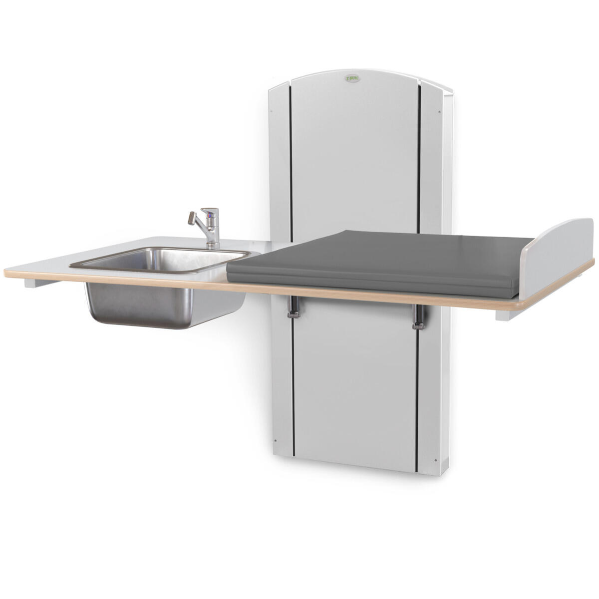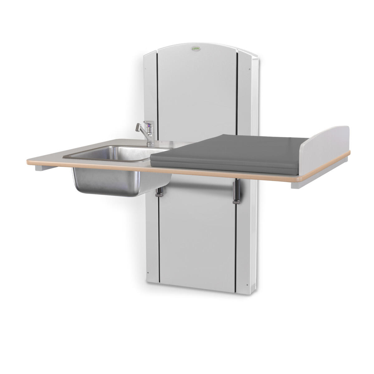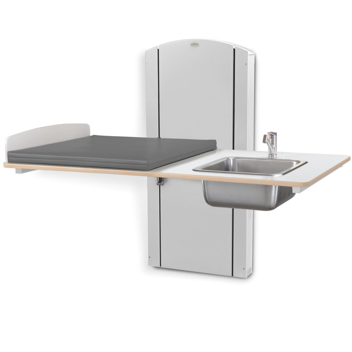 Elit vägg är ett väggmonterat elektriskt höj- och sänkbart skötbord där du kan ställa in arbetshöjden mellan 57 – 110 cm. Du ställer lätt in rätt arbetshöjd med handkontrollen. Elit finns i bredder mellan 60-140 cm och med tvättdel höger eller vänster i bredderna 100, 120 och 140 cm. Samtliga bredder har en standardskiva i laminerad plyfa (vit eller björk) med mjukt rundade hörn och höga kanter. För att undvika klämrisker mellan skötbordet och omgivande ytor bör du ha ett säkerhetsavstånd på ca 10 cm. Skötbordsdyna ingår. Dynan är spritbar och tål maskintvätt upp till 60 °C. Vid val av tvättdel ingår blandare. Vid bredd 120-140 ingår blandare med handdusch. Vid bredd 100 ingår blandare utan handdusch.