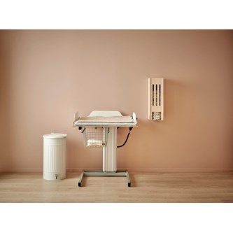En enklare variant av skötbord Elise men med samma funktioner. Inklusive fallskydd. Kan kompletteras med dyna artikelnummer 80550 alt. 161561, blandare artikelnummer 34226, 119368 eller 119369, stege artikelnummer 35451 och korgsats artikelnummer 35452. Önskar man kombinera stege och korgsats, använd då korgsats 83408. Drift med transformator 24 V/240 V och elmotor 24 V. Längd strömsladd 3,7 m. Längd avloppsslang 1,8 m. Ställbar höjd 76-96 cm. Mått skötbord: 140x80 cm. Djup inkl stativ: 80 cm. Lyfter 15 kg.